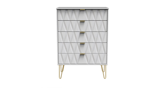 Diamond Tall Chest of Drawers White 5 Drawers 109cm