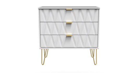Diamond Chest of Drawers White 3 Drawers 77cm
