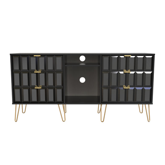 Cube Large Sideboard Black 2 Shelves 6 Drawers 152cm