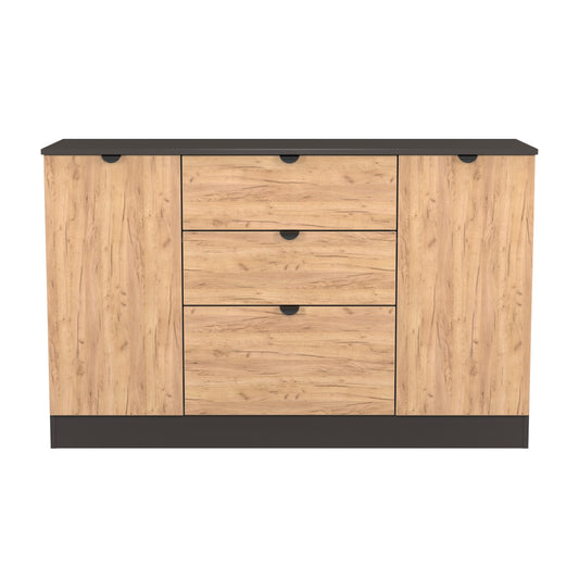 Bora Large Sideboard Oak & Dark Grey 2 Doors 2 Shelves 3 Drawers 126cm
