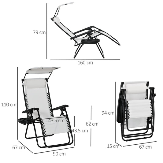 Zero Gravity Garden Folding Patio Sun Lounger w/Cup Holder & Canopy Shade White