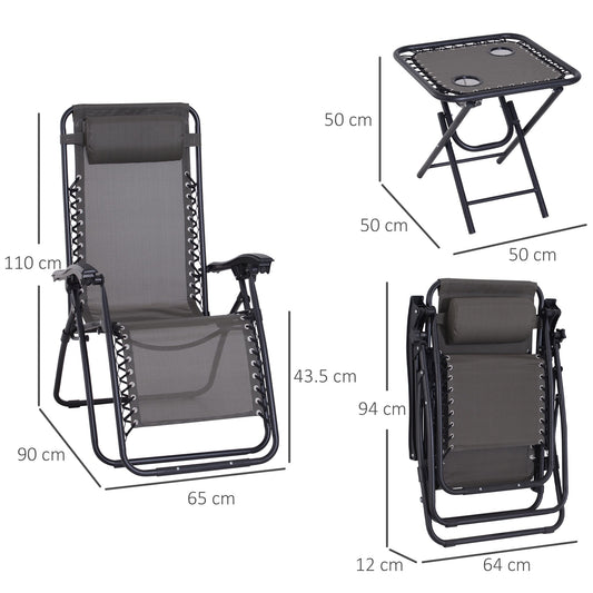 3-Piece Folding Zero Gravity Chairs Sun Lounger Table Set w/ Cup Holders Reclining Garden Yard Pool