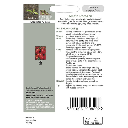Sold outJohnsons Tomato Roma VF Seeds