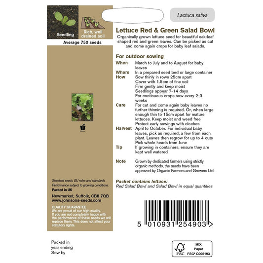 Johnsons Organic Lettuce Red & Green Salad Bowl Seeds