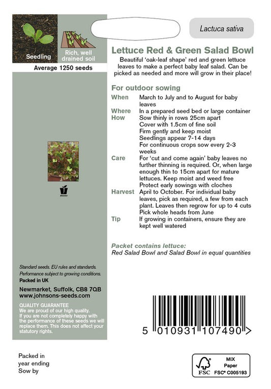 Johnsons Lettuce Red & Green Salad Bowl Seeds