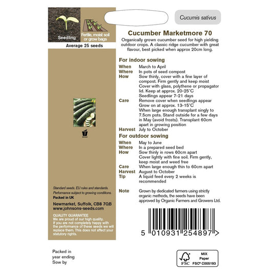 Johnsons Organic Cucumber Marketmore 70 Seeds
