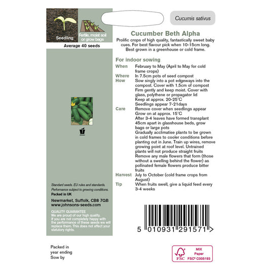Sold outJohnsons Cucumber Beth Alpha Seeds