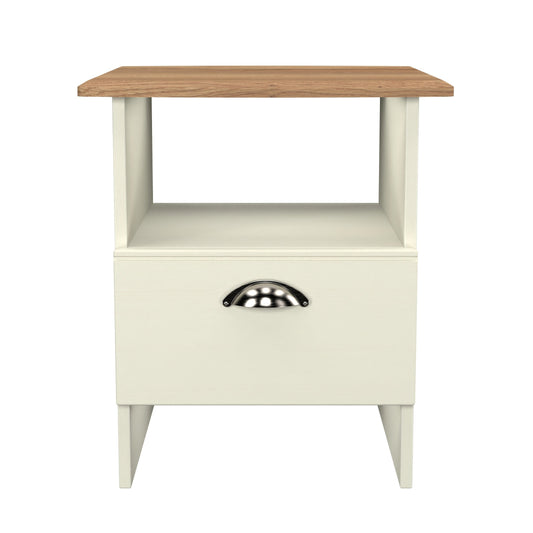 Victoria Side Table Cream & Light Oak 1 Shelf 1 Drawer 44cm