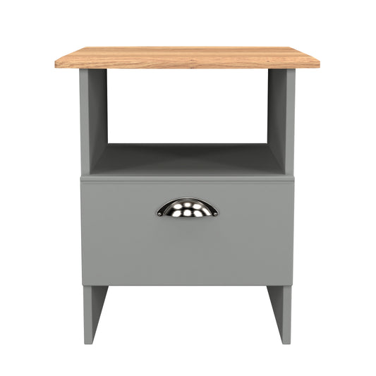 Victoria Side Table Grey & Light Oak 1 Shelf 1 Drawer 44cm