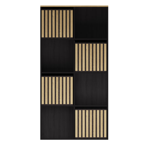 Kube Tall Sideboard Black & Light Oak 4 Shelves 4 Drawers