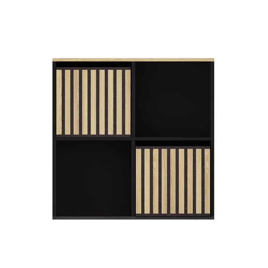 Kube Sideboard Black & Light Oak 2 Shelves 2 Drawers