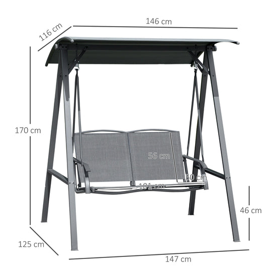 Steel Frame 2 Seater Swing Chair w/ Table Grey