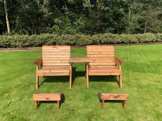 Scandinavian Redwood Garden Tete a Tete & Footstool by Charles Taylor - 2 Seat