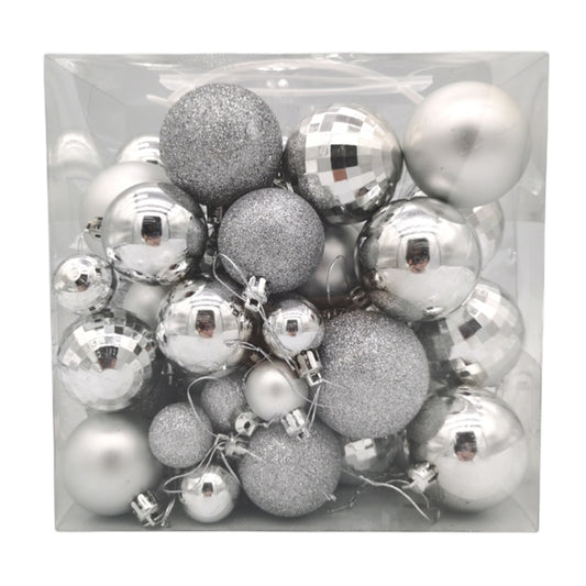 50 x Christmas Tree Baubles Decoration Silver - Various Sizes by Christmas Inspiration