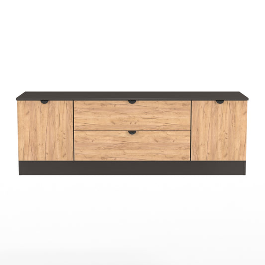 Bora TV Unit Oak & Dark Grey 2 Drawers 2 Doors 144cm