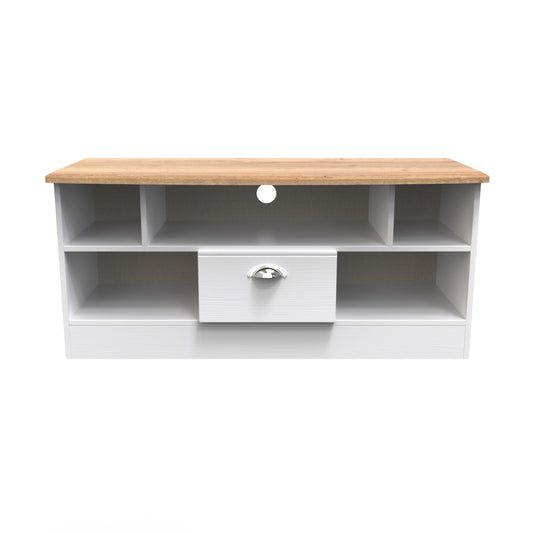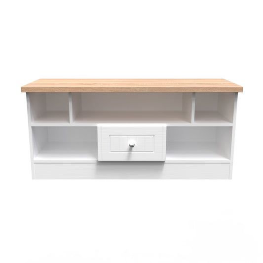Worcester TV Unit White & Light Oak 5 Shelves 1 Drawer 110cm