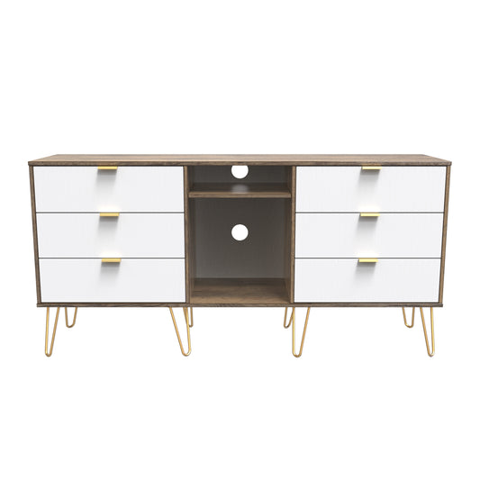 Linear TV Unit White & Oak 2 Shelves 6 Drawers 152cm