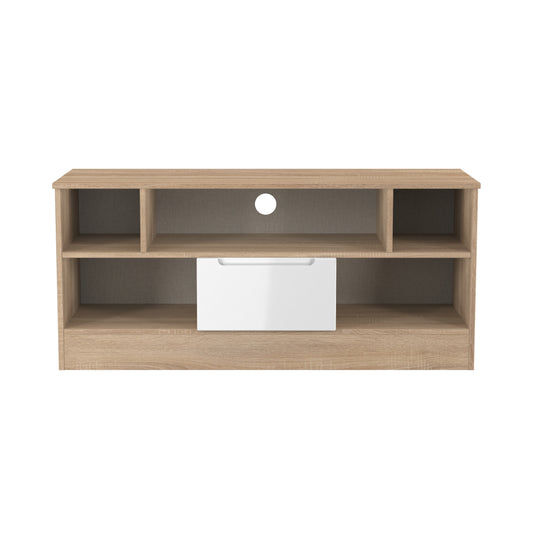 Milan TV Unit White & Oak 5 Shelves 1 Drawer 110cm