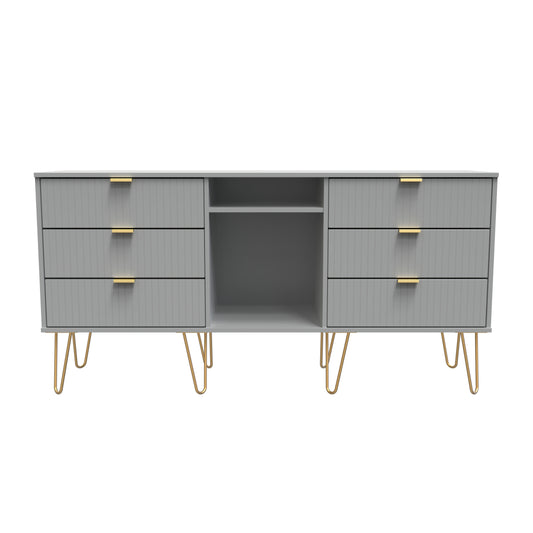 Linear TV Unit Grey 2 Shelves 6 Drawers 152cm