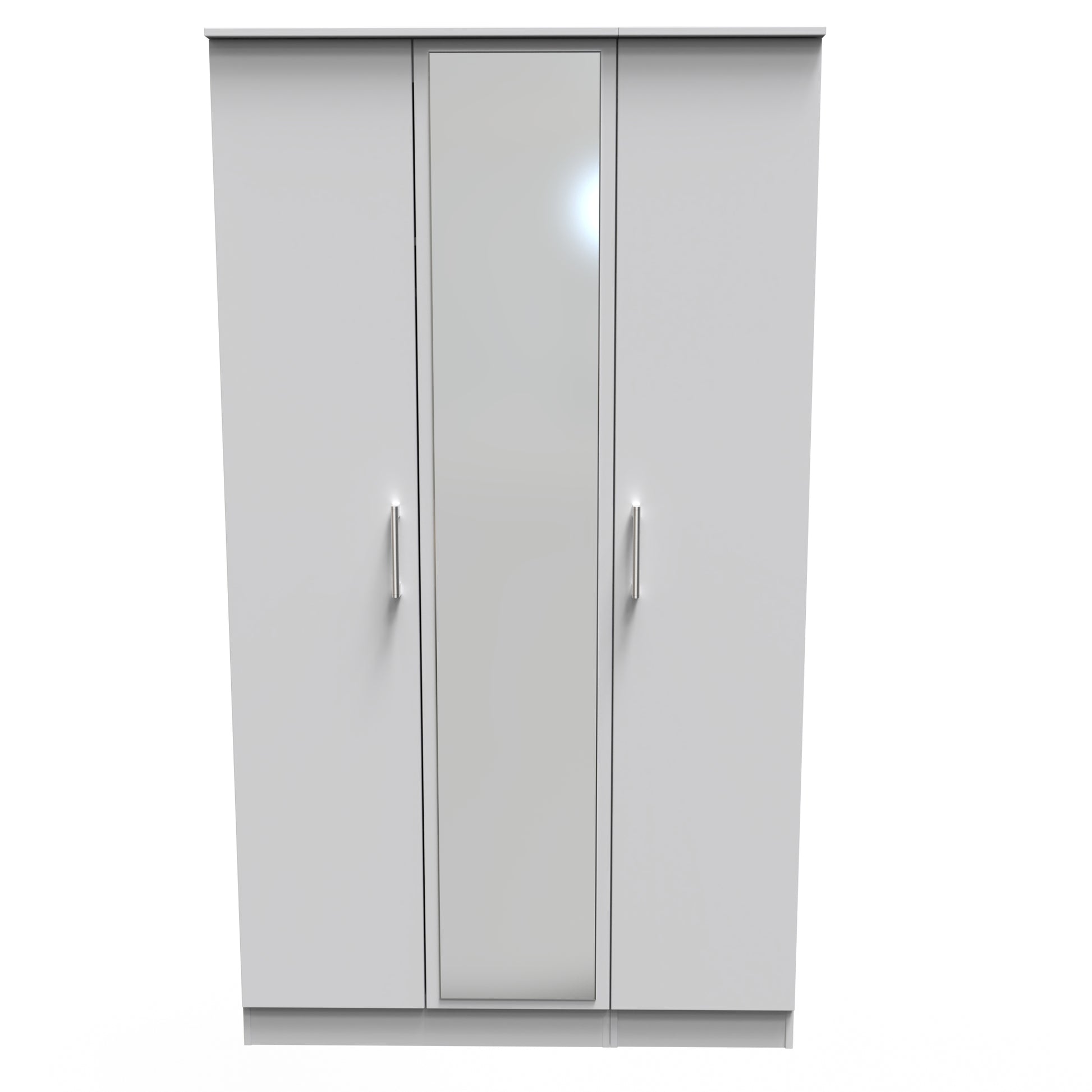 Devon Tall Mirror Wardrobe Grey 2 Shelves 182cm