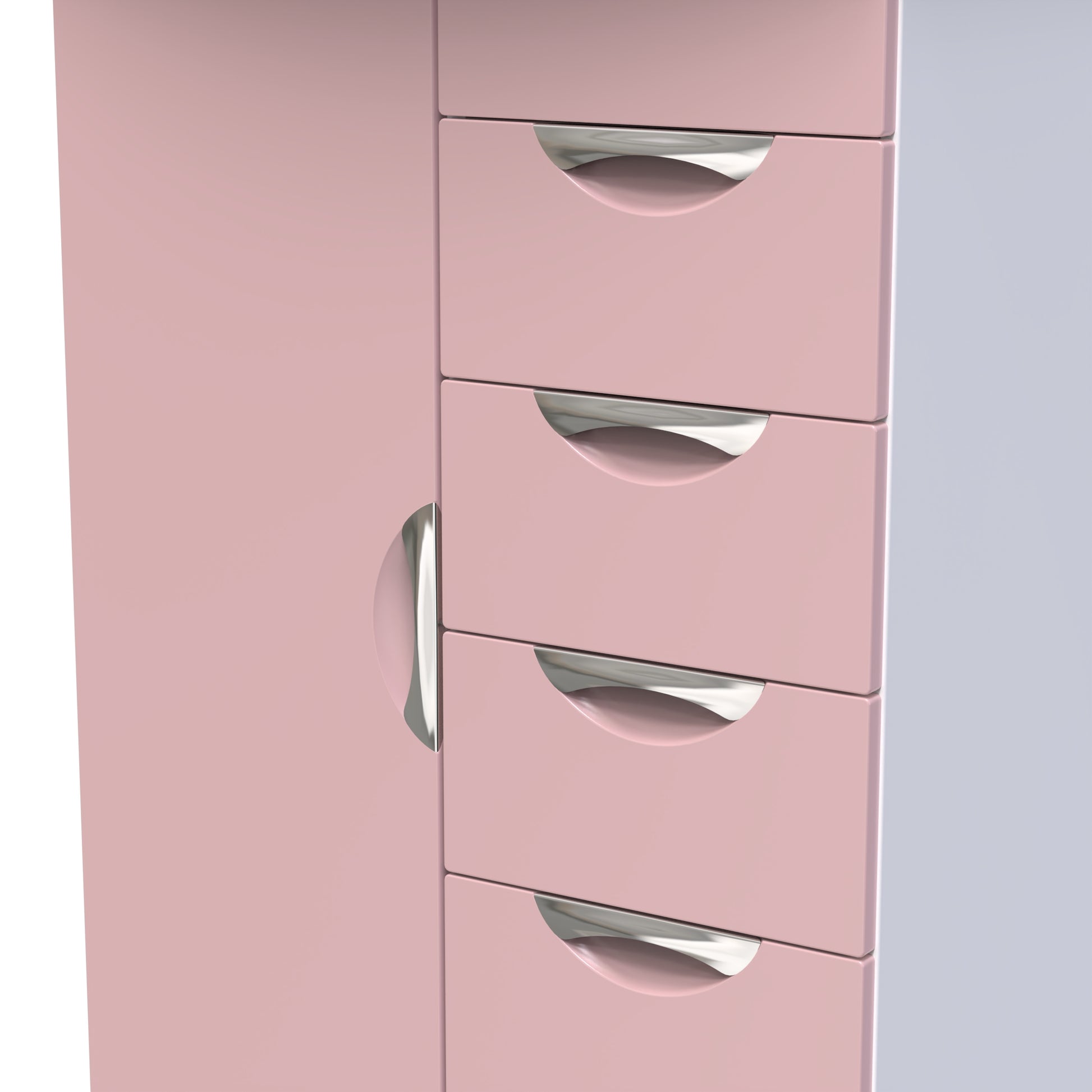 Camden Tall Wardrobe Pink & White 1 Door 1 Shelf 5 Drawers 126cm