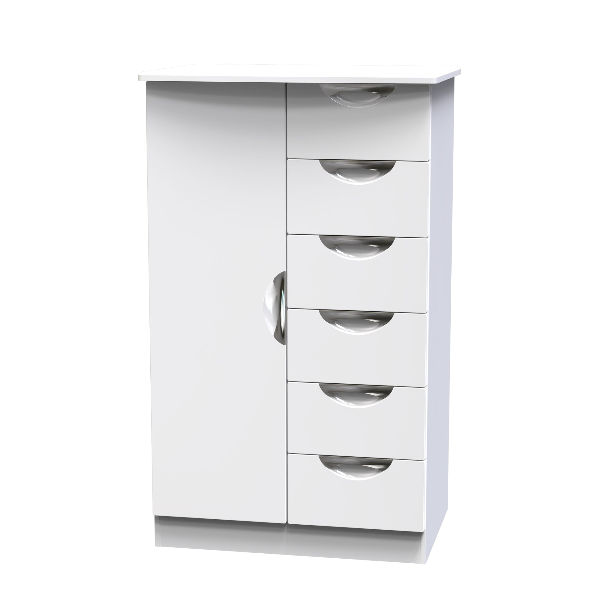 Camden Tall Wardrobe White 1 Door 1 Shelf 5 Drawers 126cm