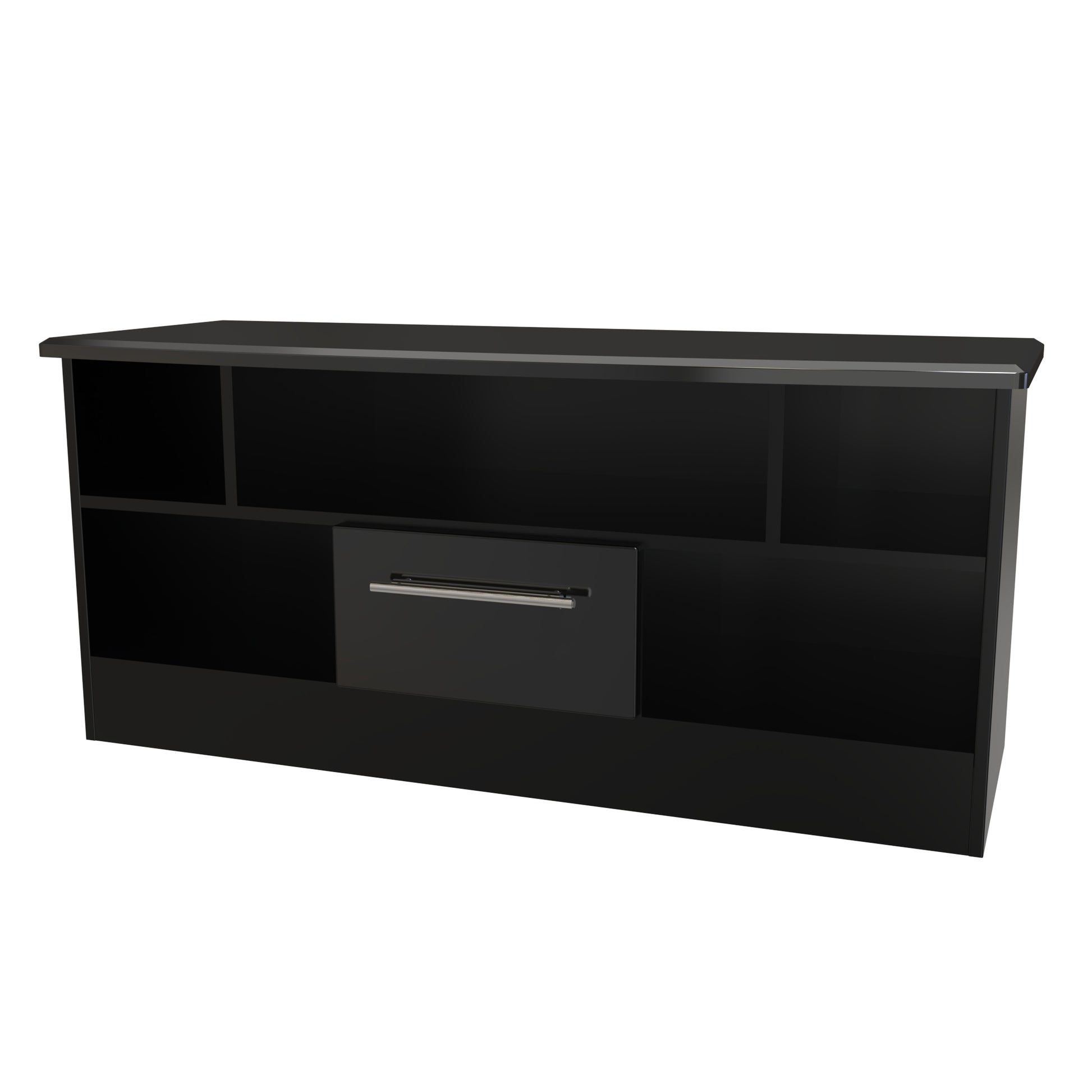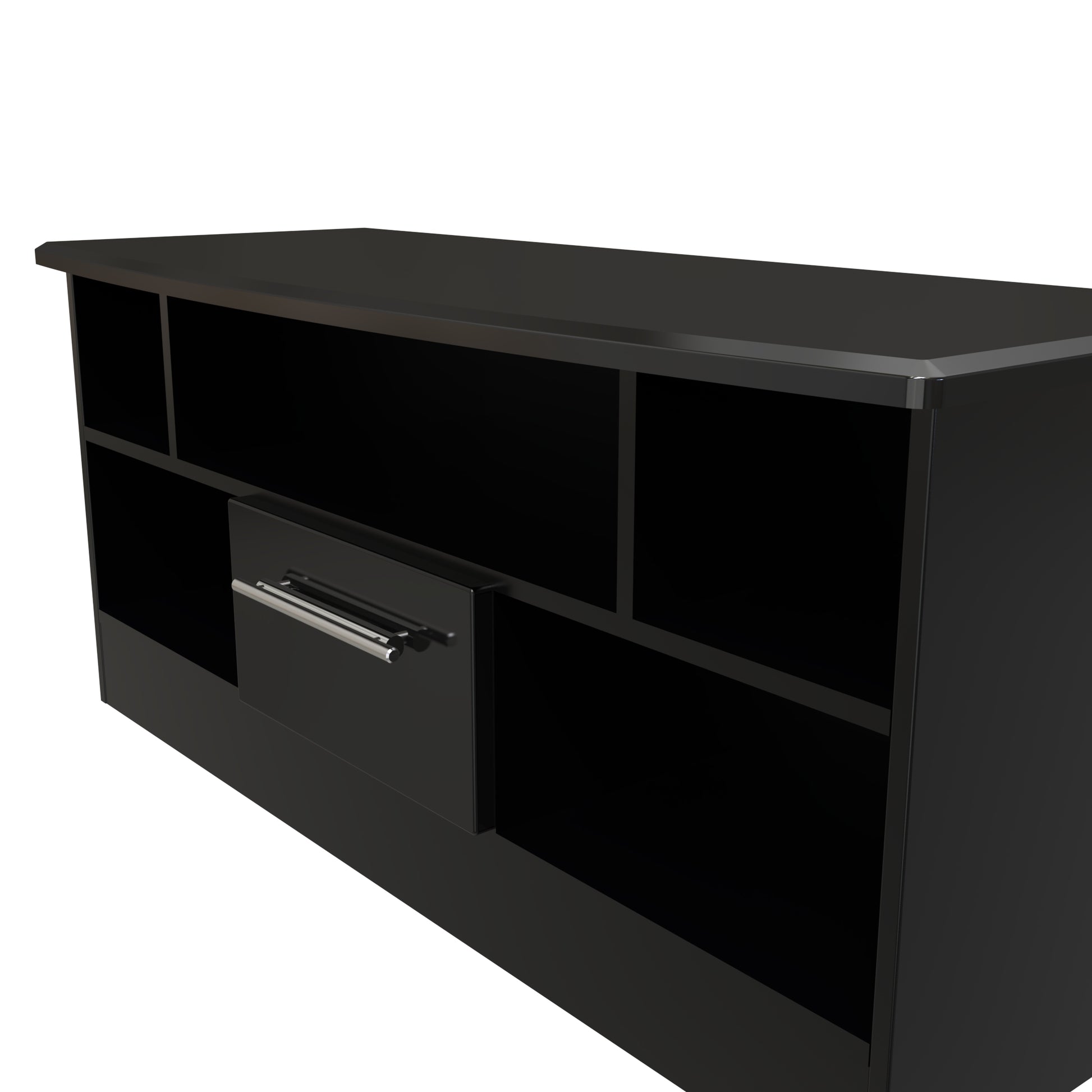 Knightsbridge TV Unit Black 5 Shelves 1 Drawer 112cm
