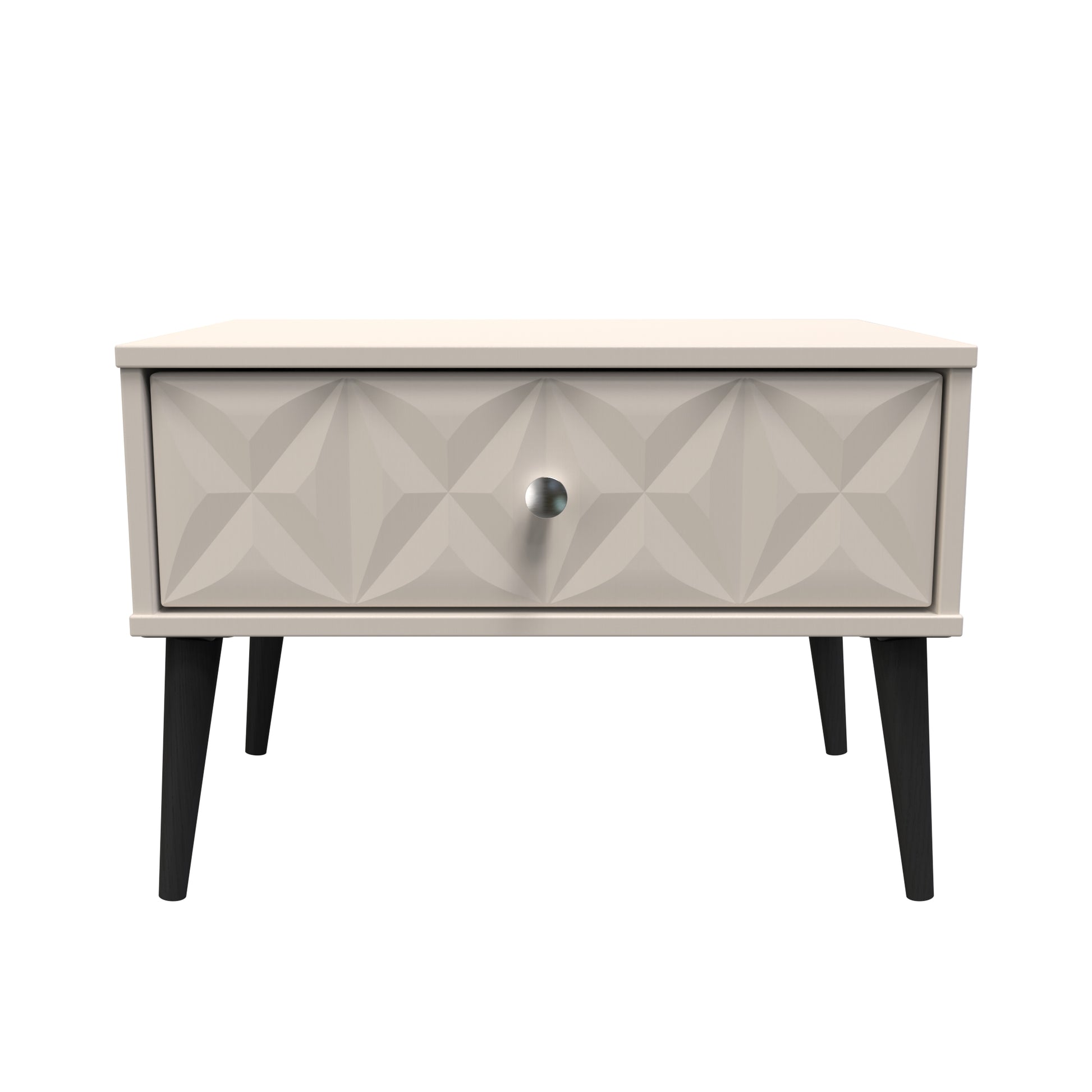 This single drawer bedside cabinet is wider than normal for added practicality. Perfect for any bedside or as a free standing storage unit. A modern and distinctive range. This ranges unique aesthetic is best represented by the distinctive "Pixel" patten of the drawer and door fronts. Also features Black Metal Handles and Black Hairpin Legs. Comes in a wide range of colours including eye cathching two tone colour combinations. All our furniture is made to order in the United Kingdom, to the highest quality. It is delivered within 10 working days direct to your location of choice by one of our two man delivery teams, and comes fully assembled (although legs may be removed to prevent damage in transit). Part of the Pixel Collection.
