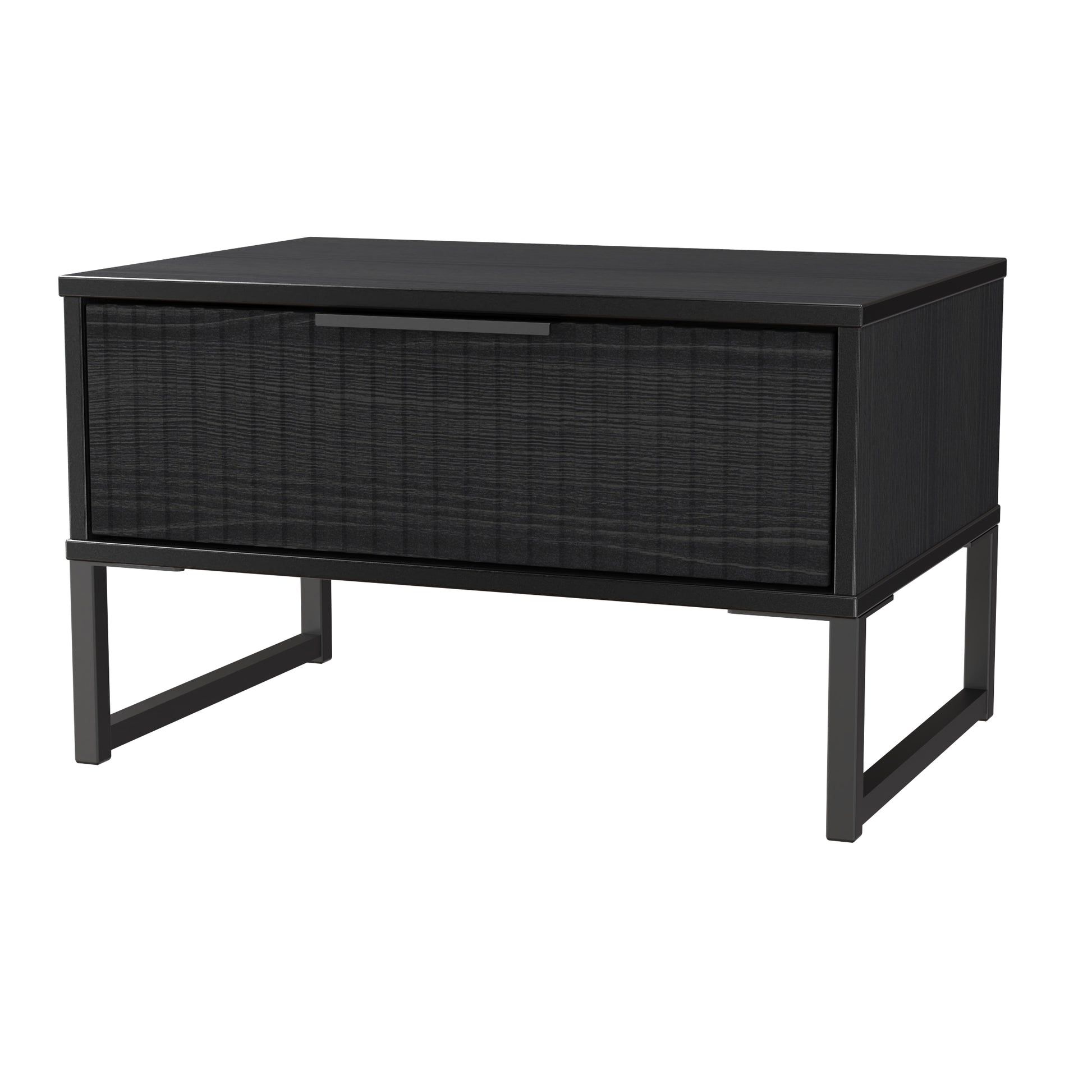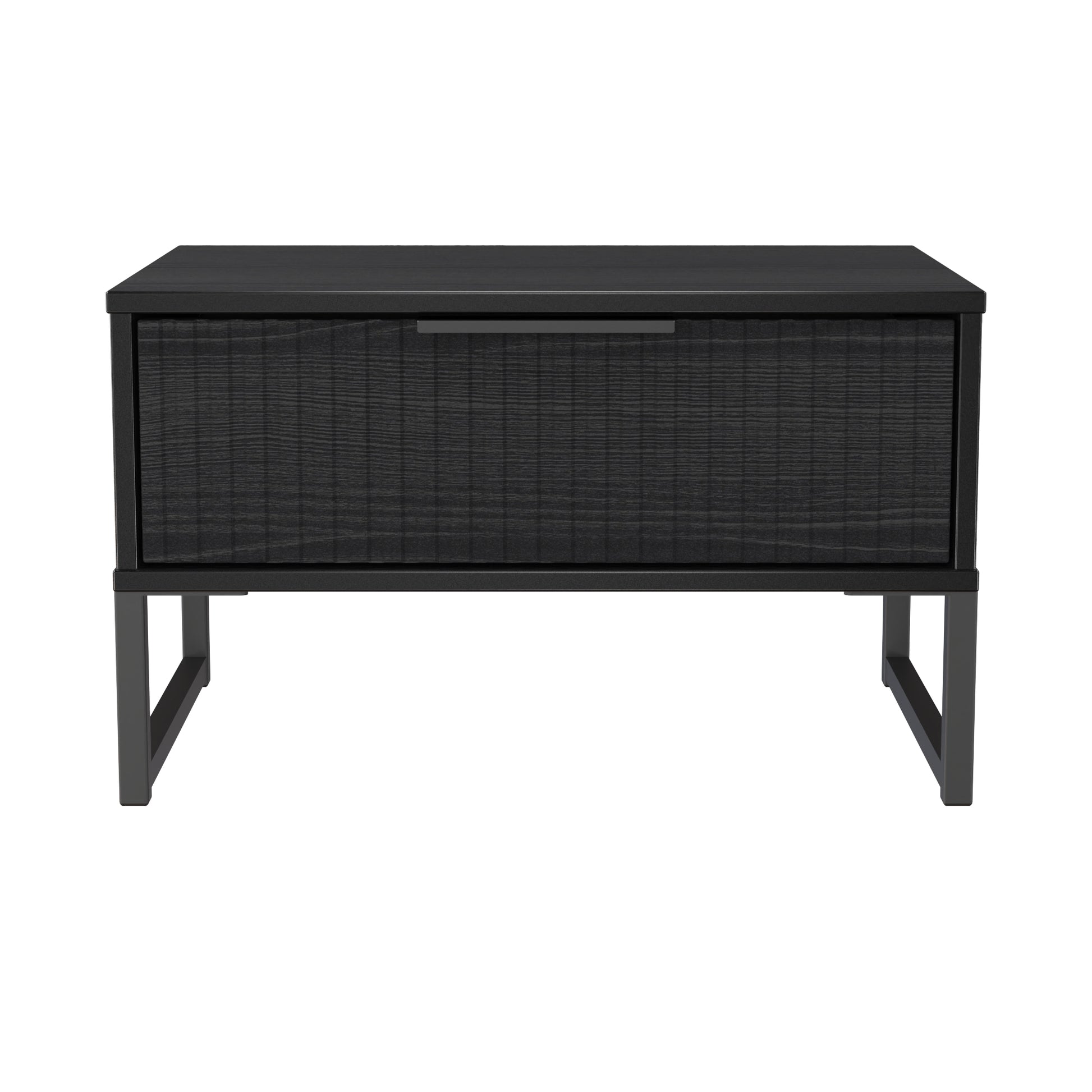 This single drawer bedside cabinet is wider than normal for added practicality. Perfect for any bedside or as a free standing storage unit. A new stand out range, with its new deep cut "fluted" grove patten of the drawer and door fronts. Featuring black metal handles and black sleigh legs. A striking and individual range that is perfect for the modern home. All our furniture is made to order in the United Kingdom, to the highest quality using responsibly sourced materials. It is delivered within 10 working days direct to your location of choice by one of our two man delivery teams, and comes fully assembled (although items with legs will have those legs removed during transit to avoid damage). Part of the Fluted Collection.