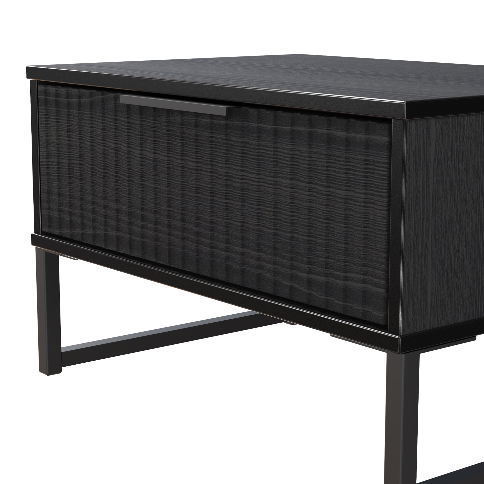 Fluted Side Table Black 1 Drawer 58cm