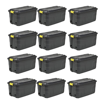 12 x Plastic Storage Box 145 Litres Extra Large - Black Heavy Duty by Strata