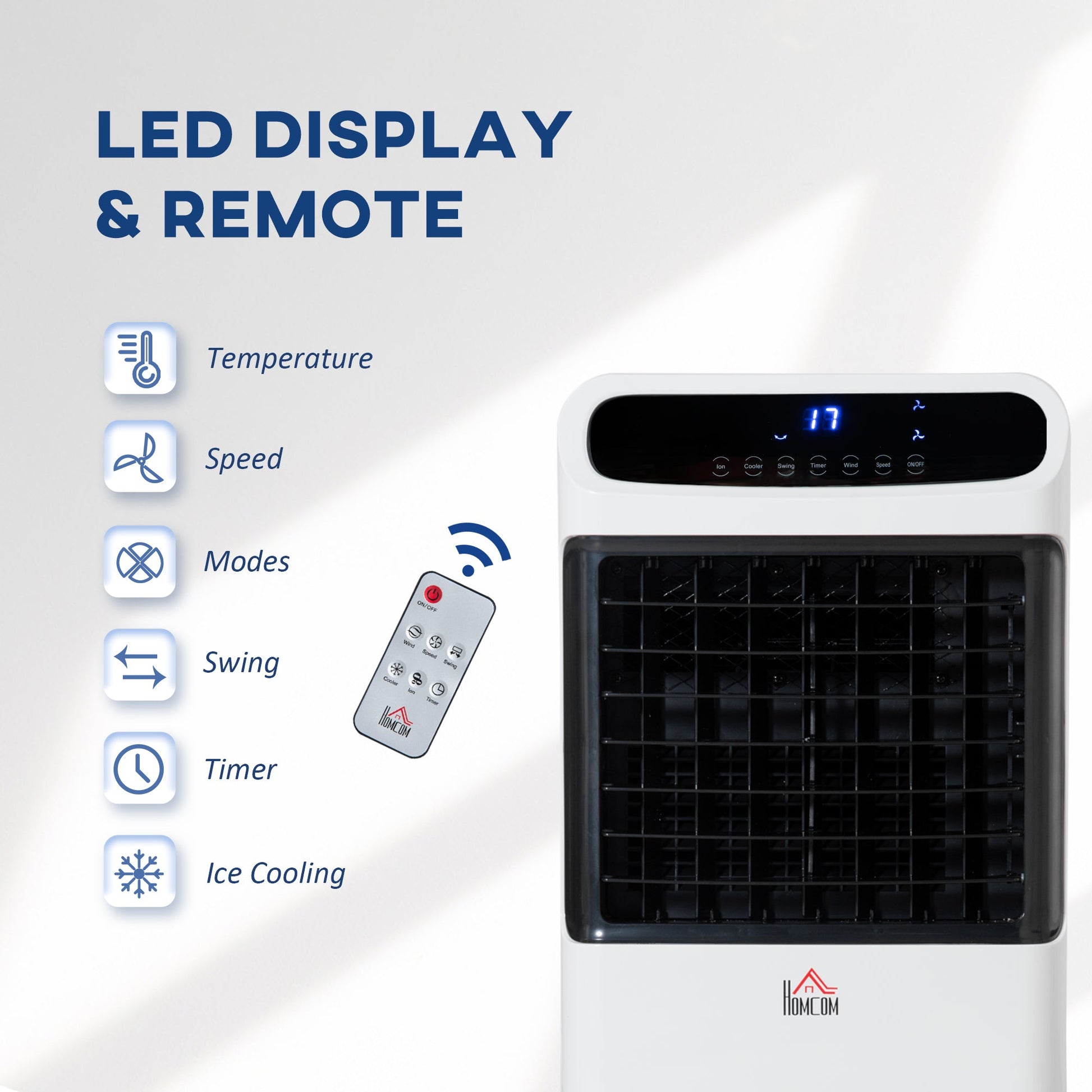 Keep your cool this summer with this cold air fan from HOMCOM. The portable air cooler comes with ice boxes so you can make the air colder and refreshing. You can change between low, medium and high speeds and adjust between normal, natural and sleep mode to set it how you like. The timer function is useful for using at night time. The evaporative air coolers swings from left to right so it covers a larger area. Buy our portable coolers and enjoy cool!