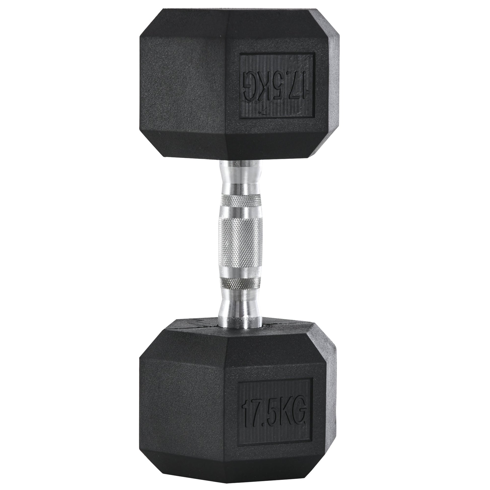 17.5KG Single Rubber Hex Dumbbell Portable Hand Weights Dumbbell Home Gym