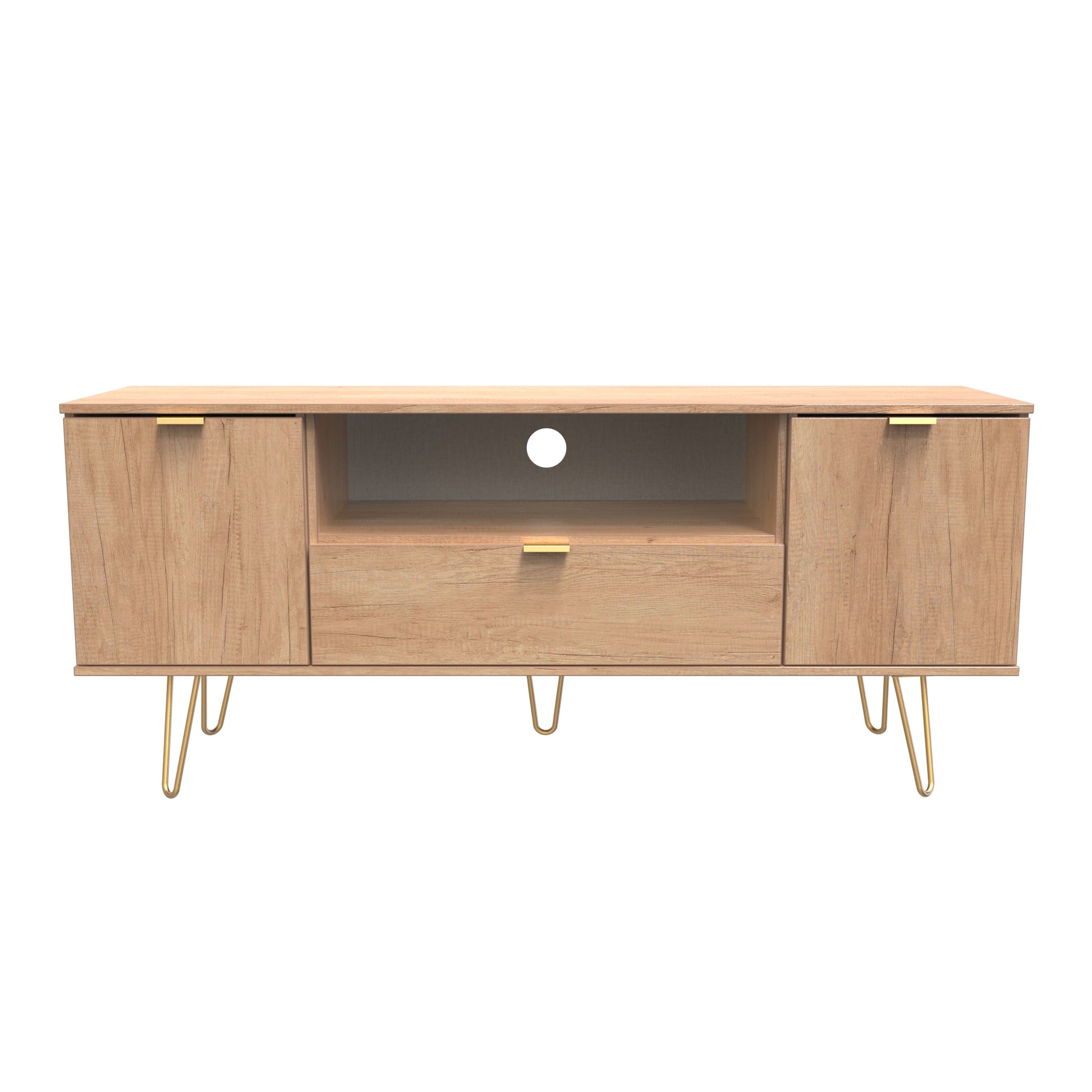 This TV unit from Swift offers great value along with first-rate quality and is ideal for those who admire pleasing aesthetics and versatility for a range of situations. A solid and well-designed TV unit, specifically built to display your television, media players and peripherals, this piece will make an exceptional upgrade to any living area. With a stylish dark oak colour scheme that will look sleek and sophisticated.