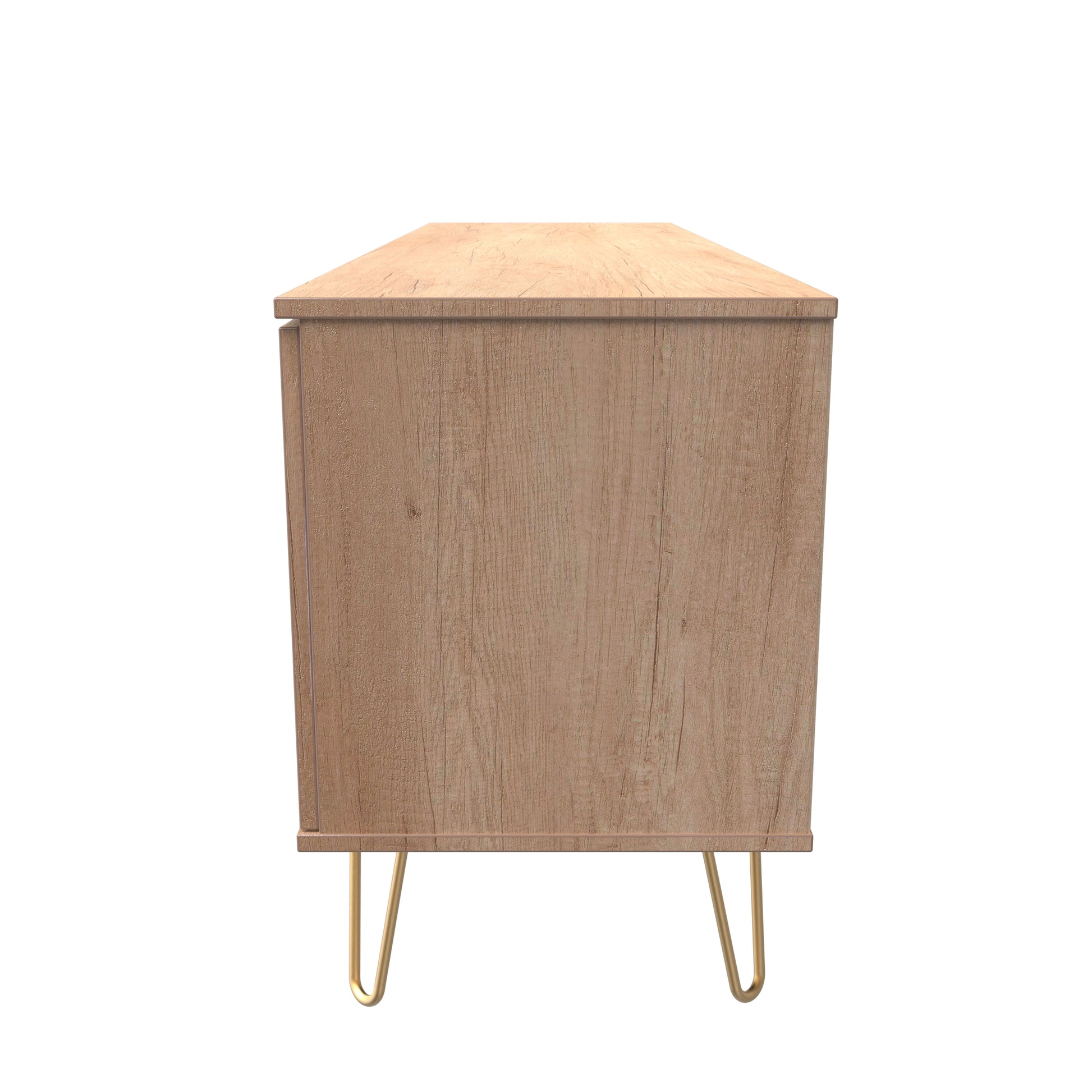 This modern wide sideboard features a single storage drawer, a central stroage shelf and a 2 single door canbinets. Modern and stylish, this striking range is available in a range of durable scratch resistant colour or natural wood finishes. With pull handles on all doors and drawers, with gold hairpin metal legs. Comes with Soft Close Drawers. All our furniture is made to order in the United Kingdom, to the highest quality. It is delivered within 10 working days direct to your location of choice by one of our two man delivery teams, and comes fully assembled (although legs may be removed to prevent damage in transit). Part of the Hong Kong F Collection.
