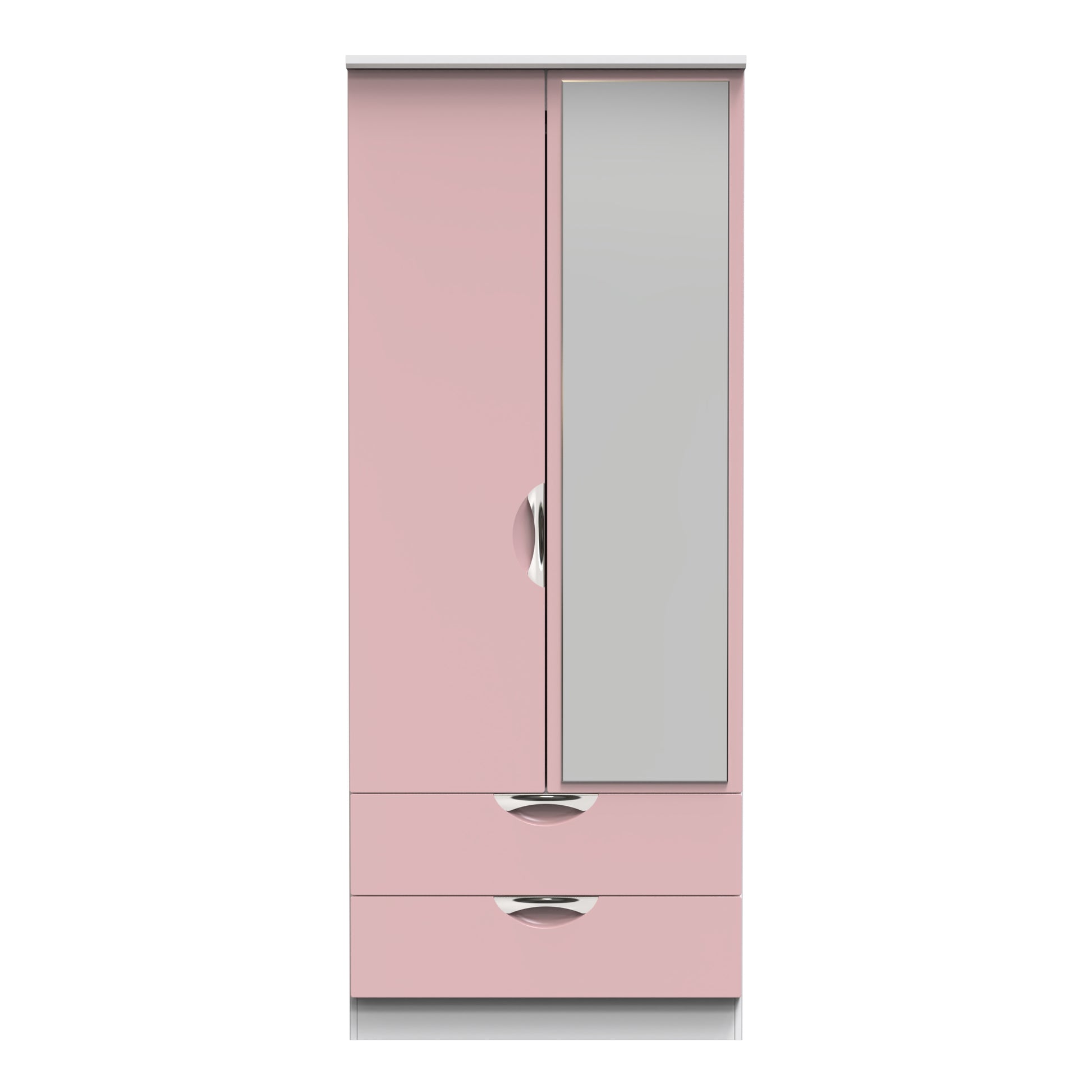 Camden Tall Mirror Wardrobe Pink & White 2 Doors 2 Drawers 182cm