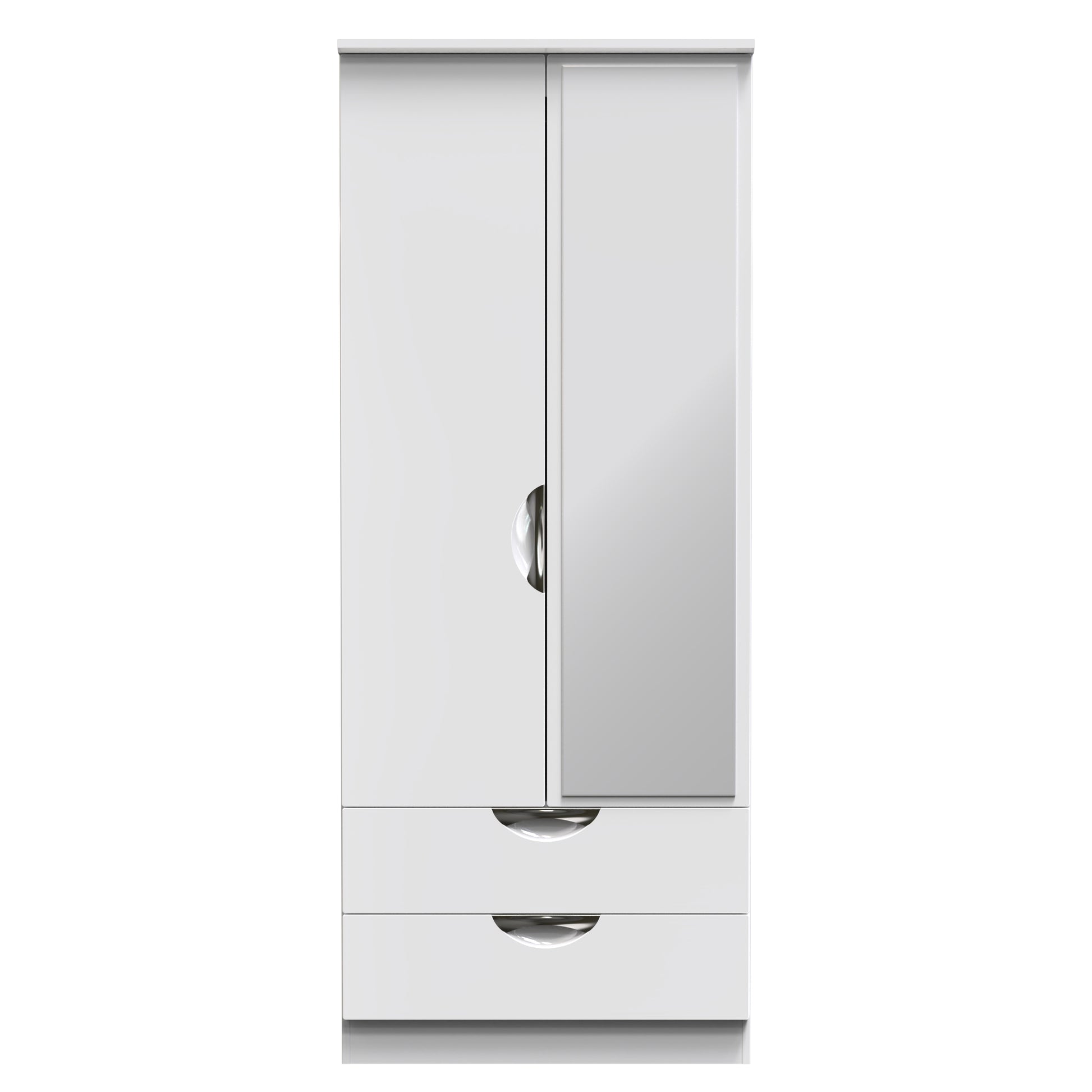Camden Tall Mirror Wardrobe White 2 Doors 2 Drawers 182cm