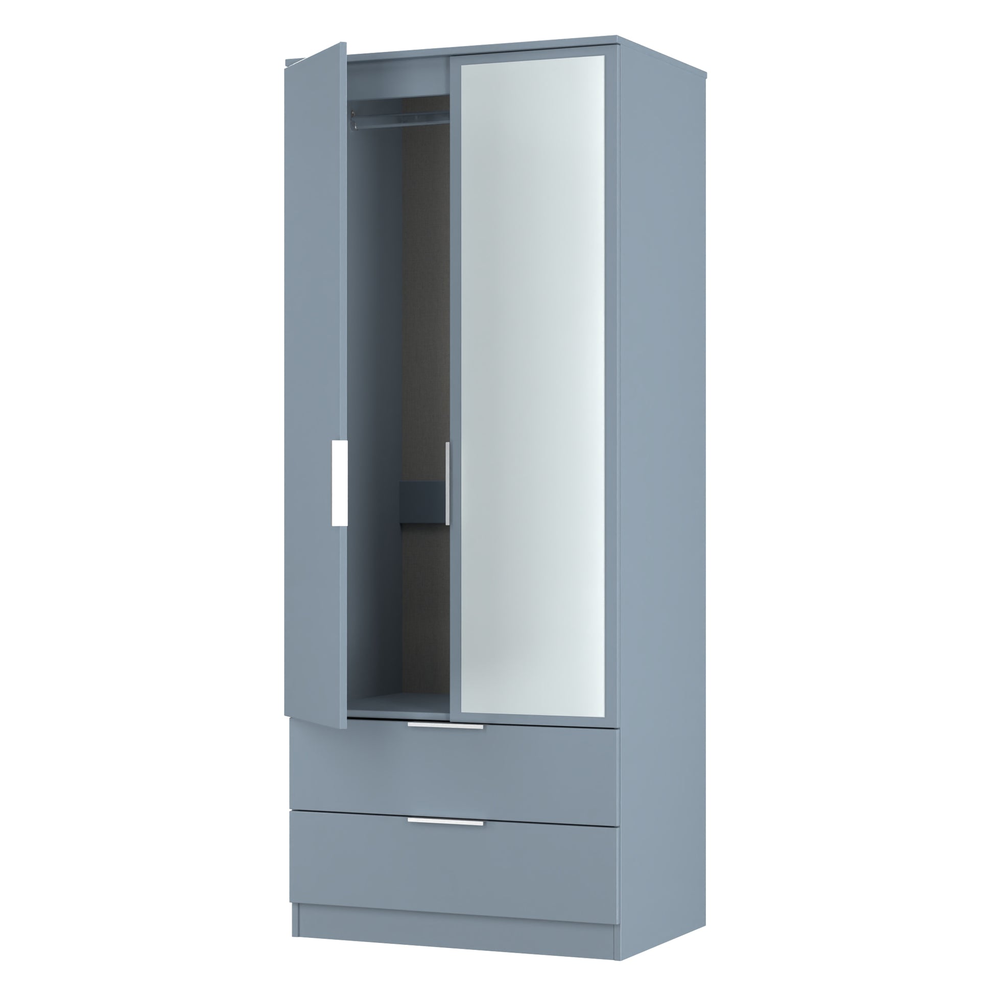 Plymouth Tall Mirror Wardrobe Light Blue 2 Doors 1 Shelf 2 Drawers 74cm