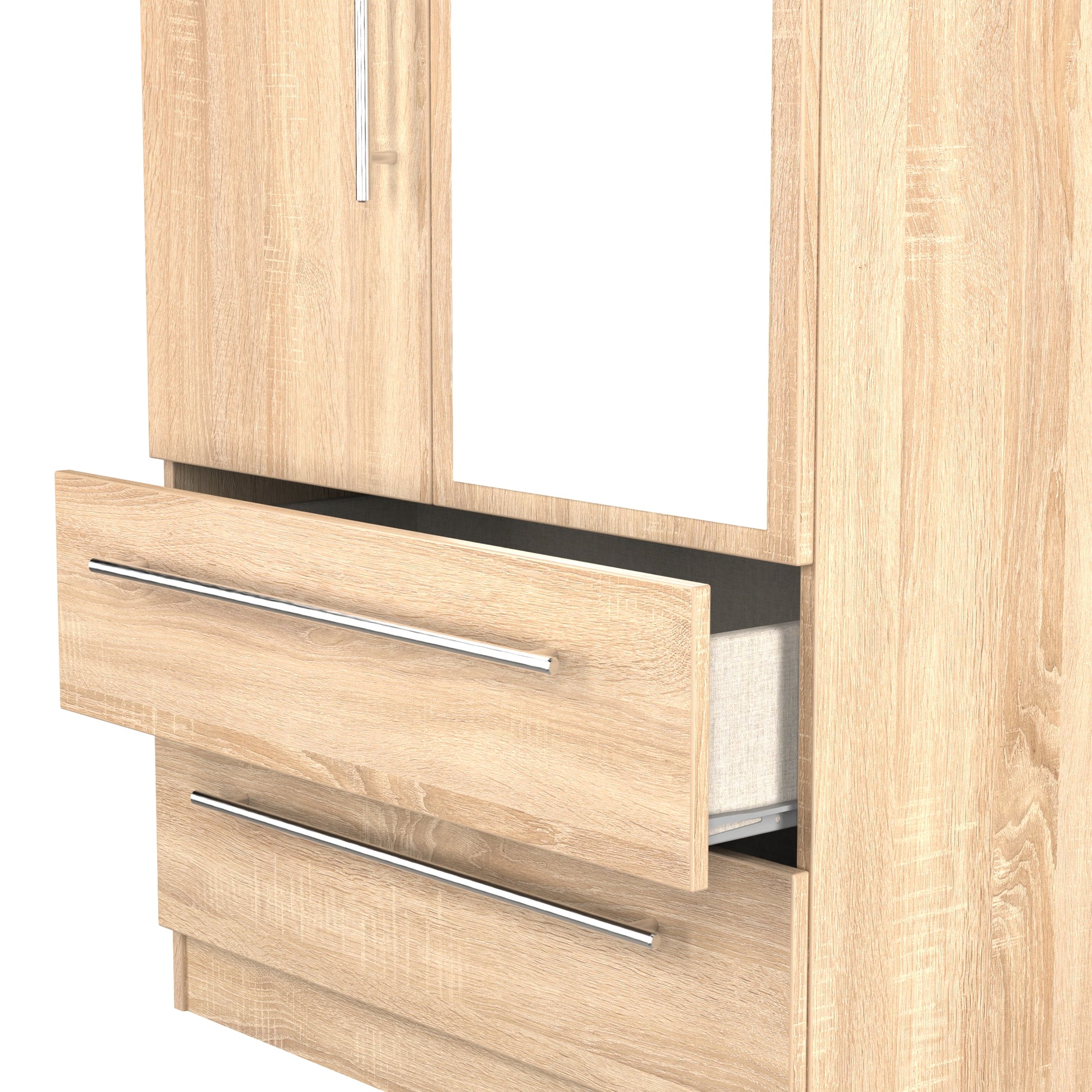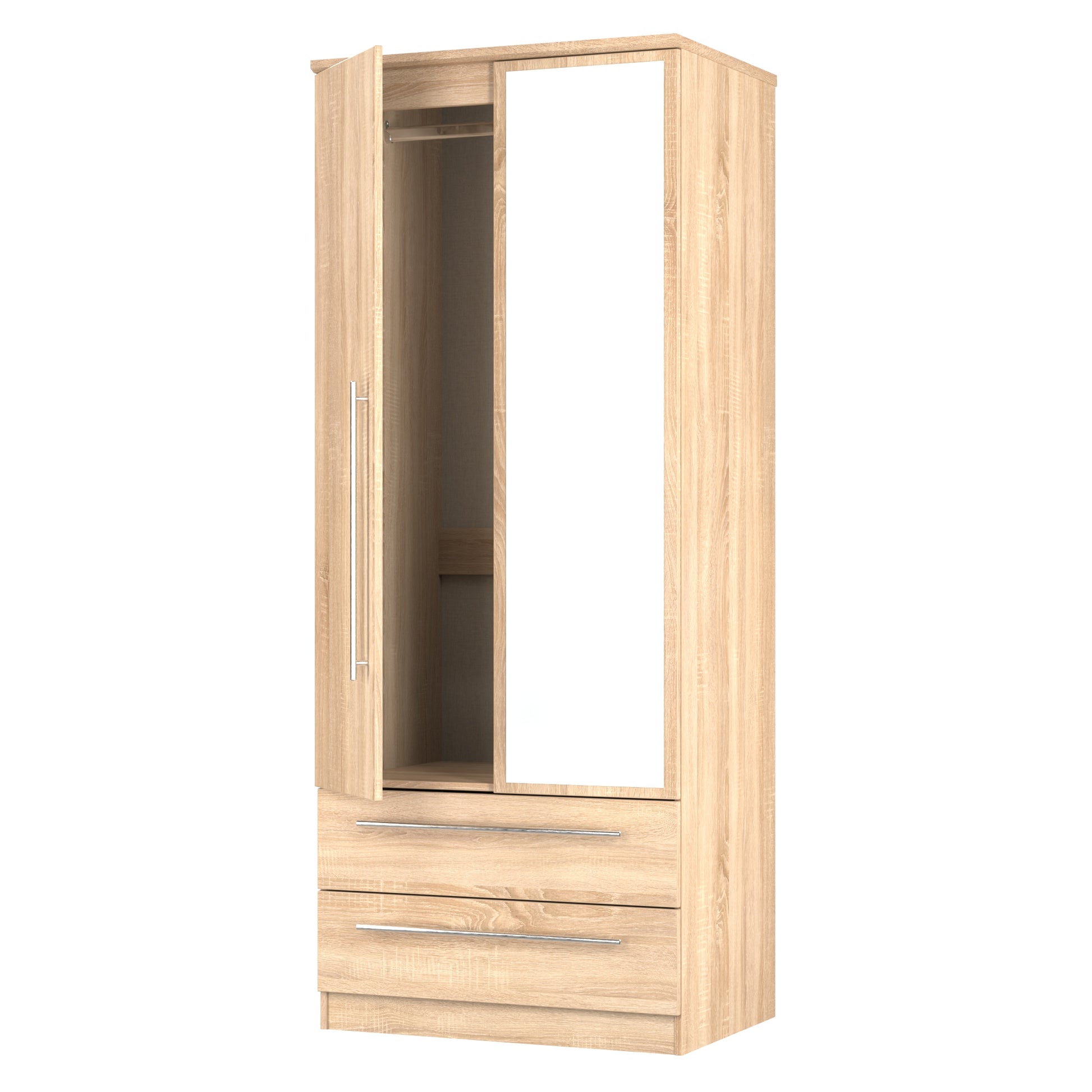 Sherwood Tall Mirror Wardrobe Light Oak 2 Doors 2 Drawers 74cm