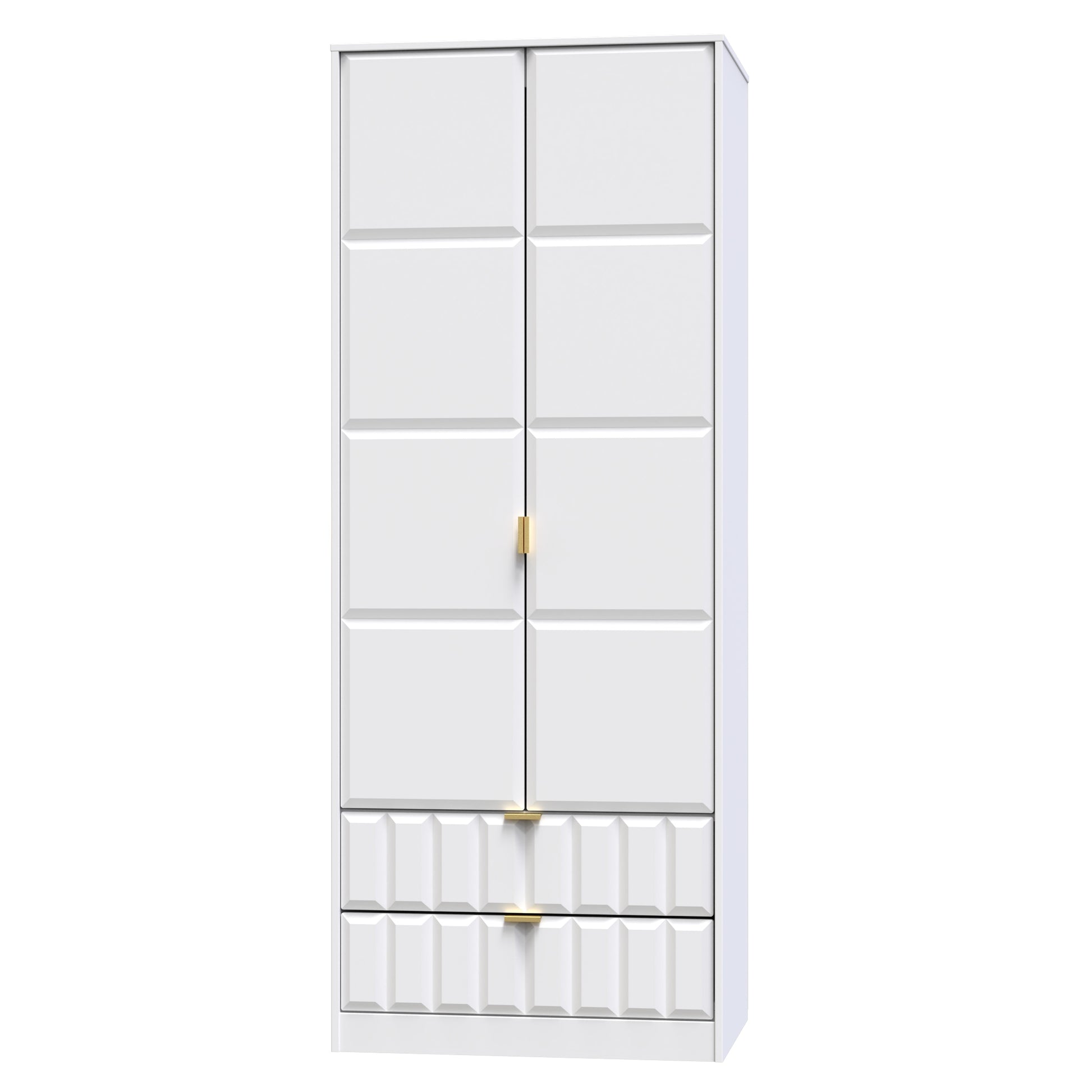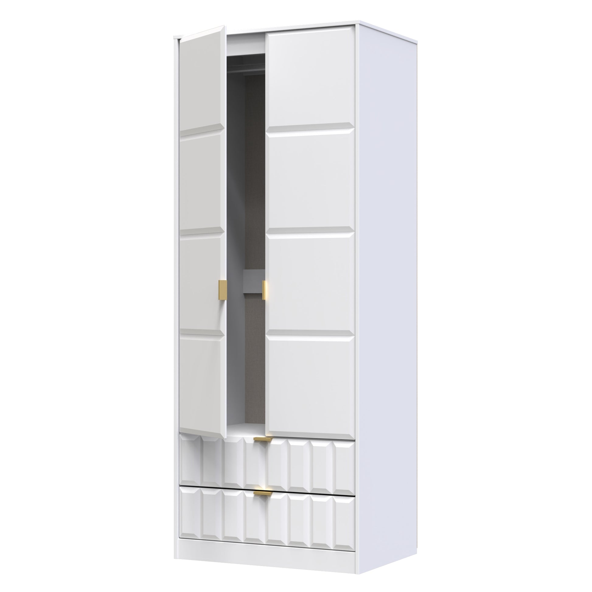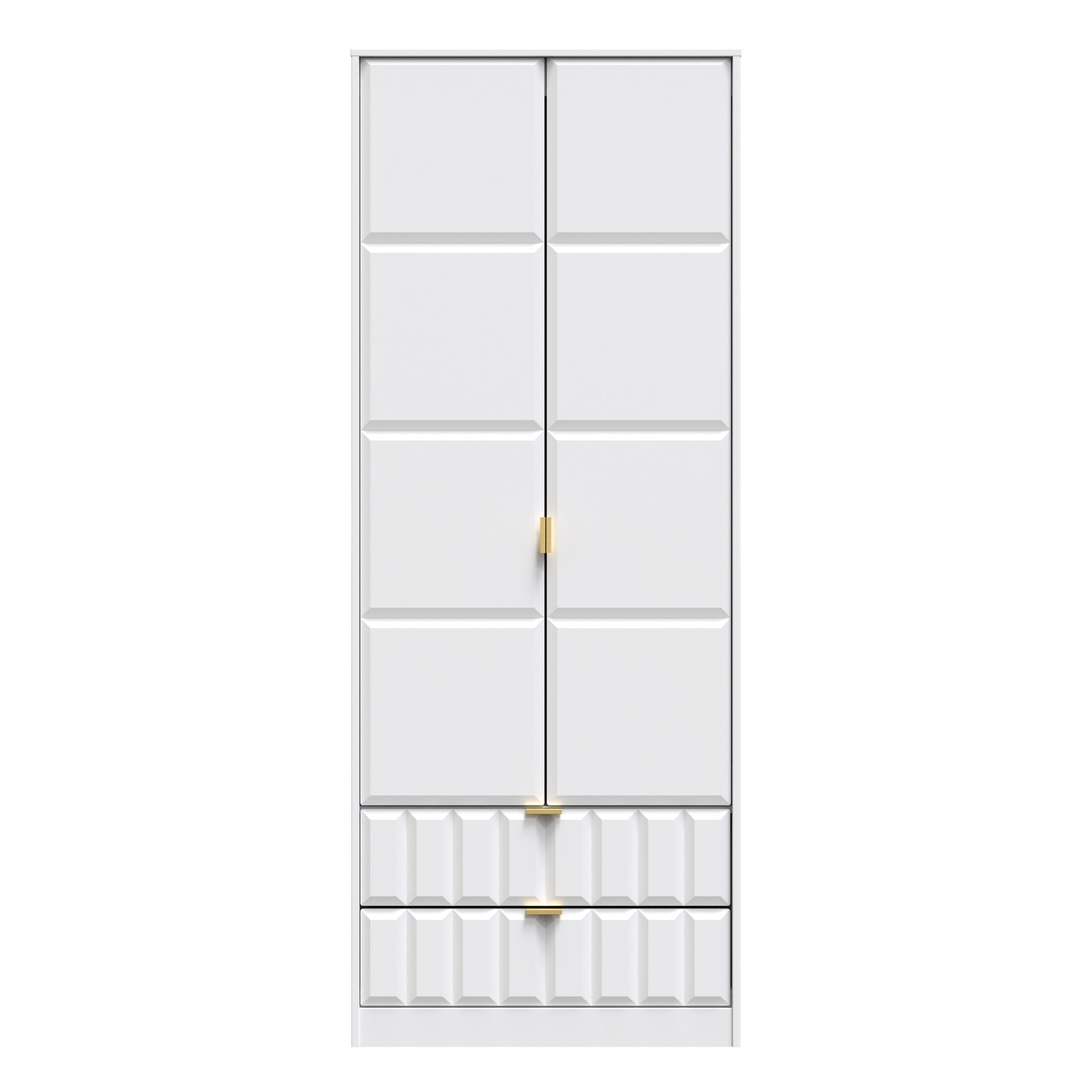 Cube Tall Wardrobe White 2 Doors 2 Drawers 197cm