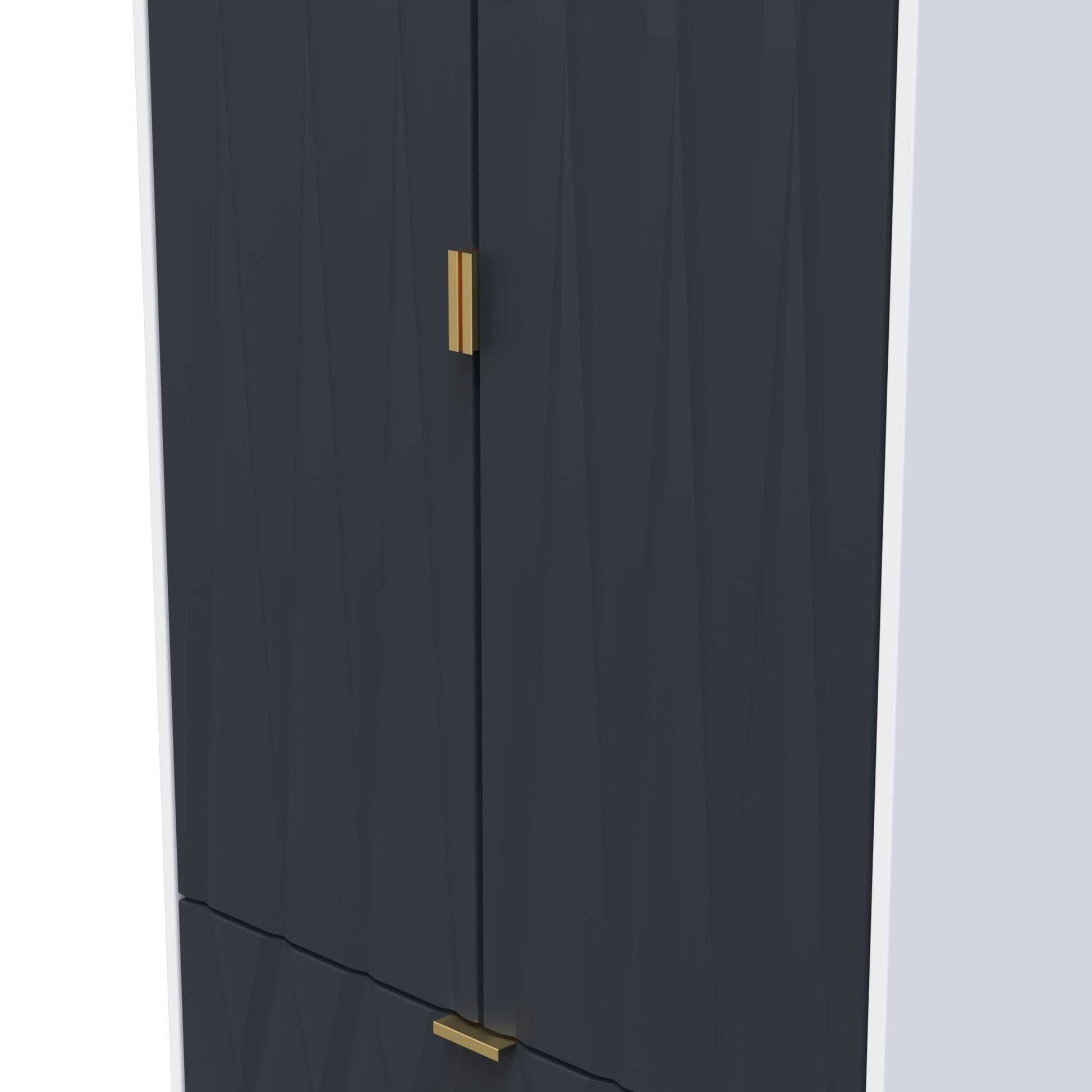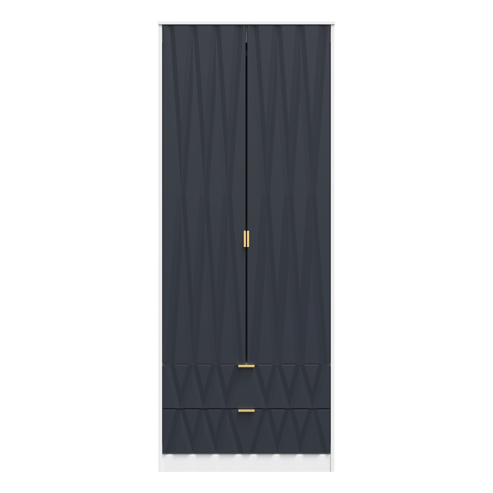 This tall double door wardrobe is perfect for any bedroom. Features the added practicality of 2 full width drawers. Say hello to contemporary cool with this modern range, with distinctive patterned drawers and a variety of colour options available to compliment any interior design. Gold metal handles and sturdy hairpin legs complete the storage solution. All our furniture is made to order in the United Kingdom, to the highest quality. It is delivered within 10 working days direct to your location of choice by one of our two man delivery teams, and comes fully assembled (although legs may be removed to prevent damage in transit). Part of the Diamond Collection.