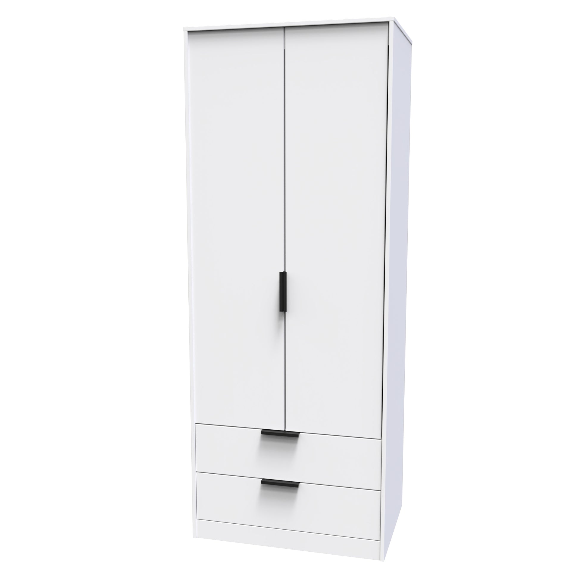 Hong Kong C Tall Wardrobe White 2 Doors 2 Drawers 197cm
