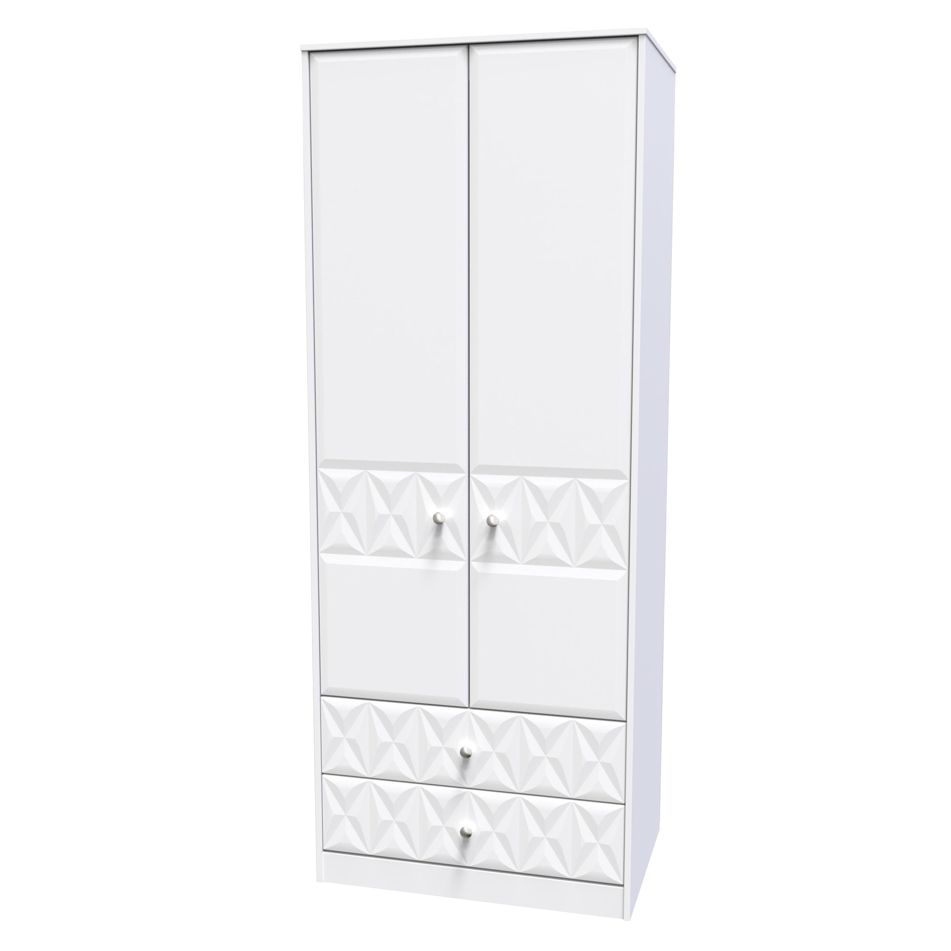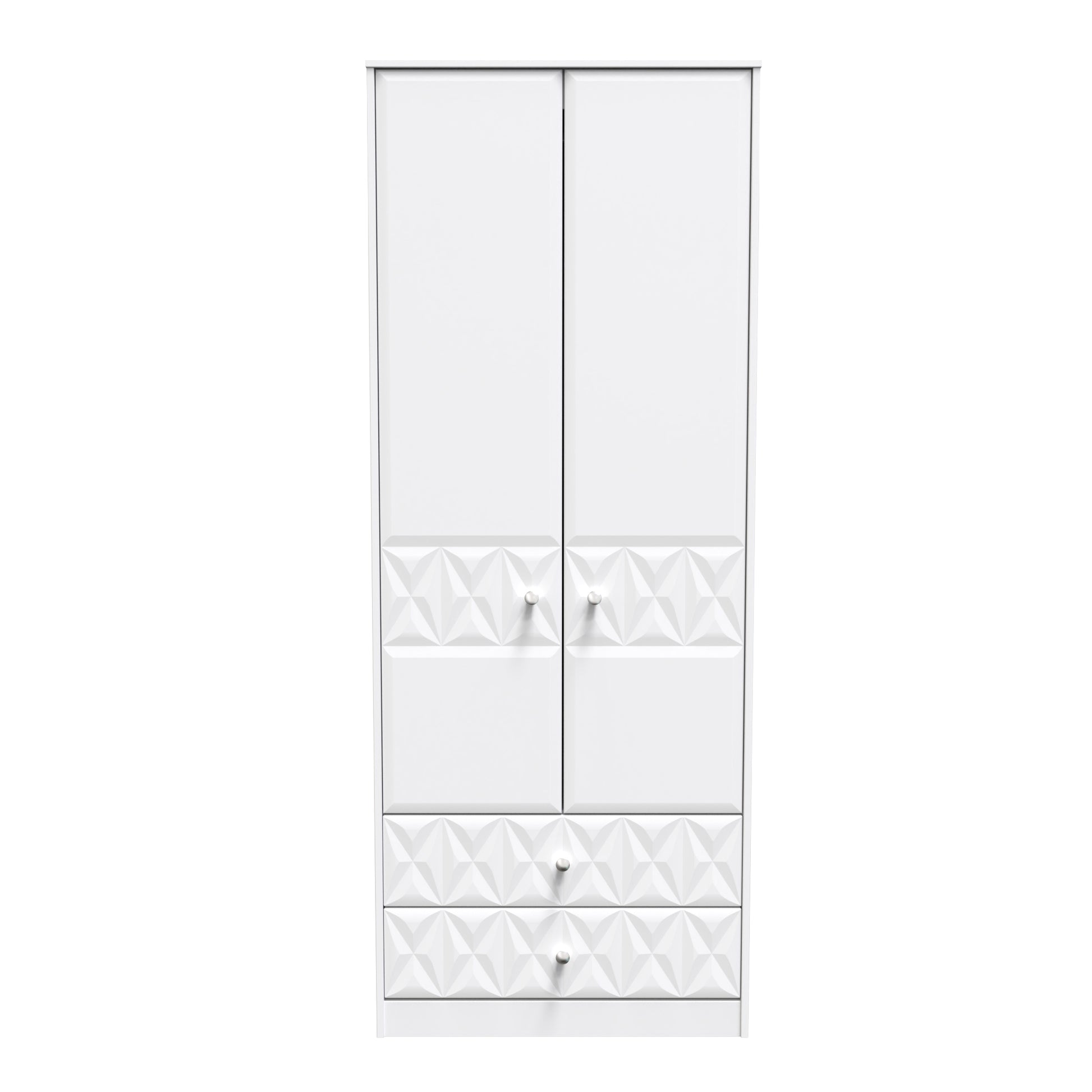 Pixel Tall Wardrobe White 2 Doors 2 Drawers 77cm