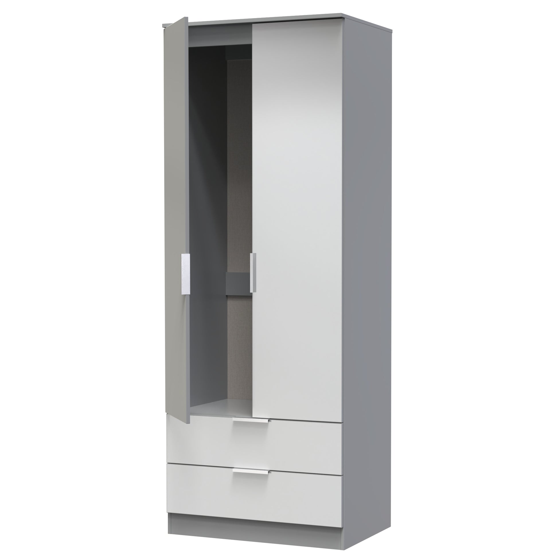 Plymouth Tall Wardrobe Grey 2 Doors 2 Drawers 74cm