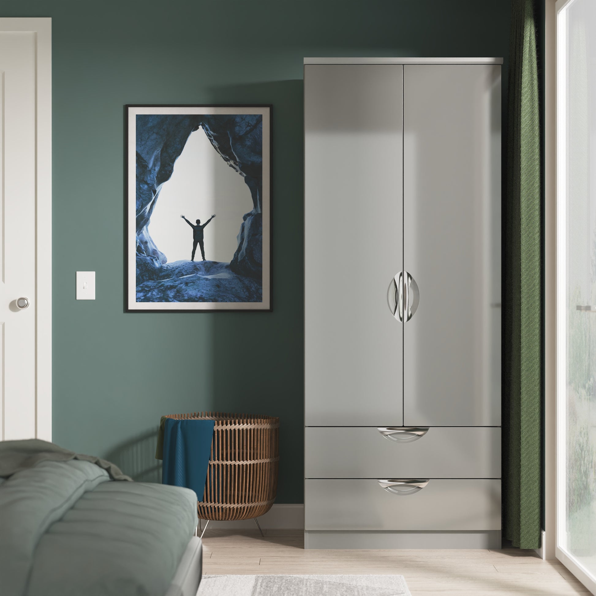 Camden Tall Wardrobe Grey 2 Doors 2 Drawers 182cm