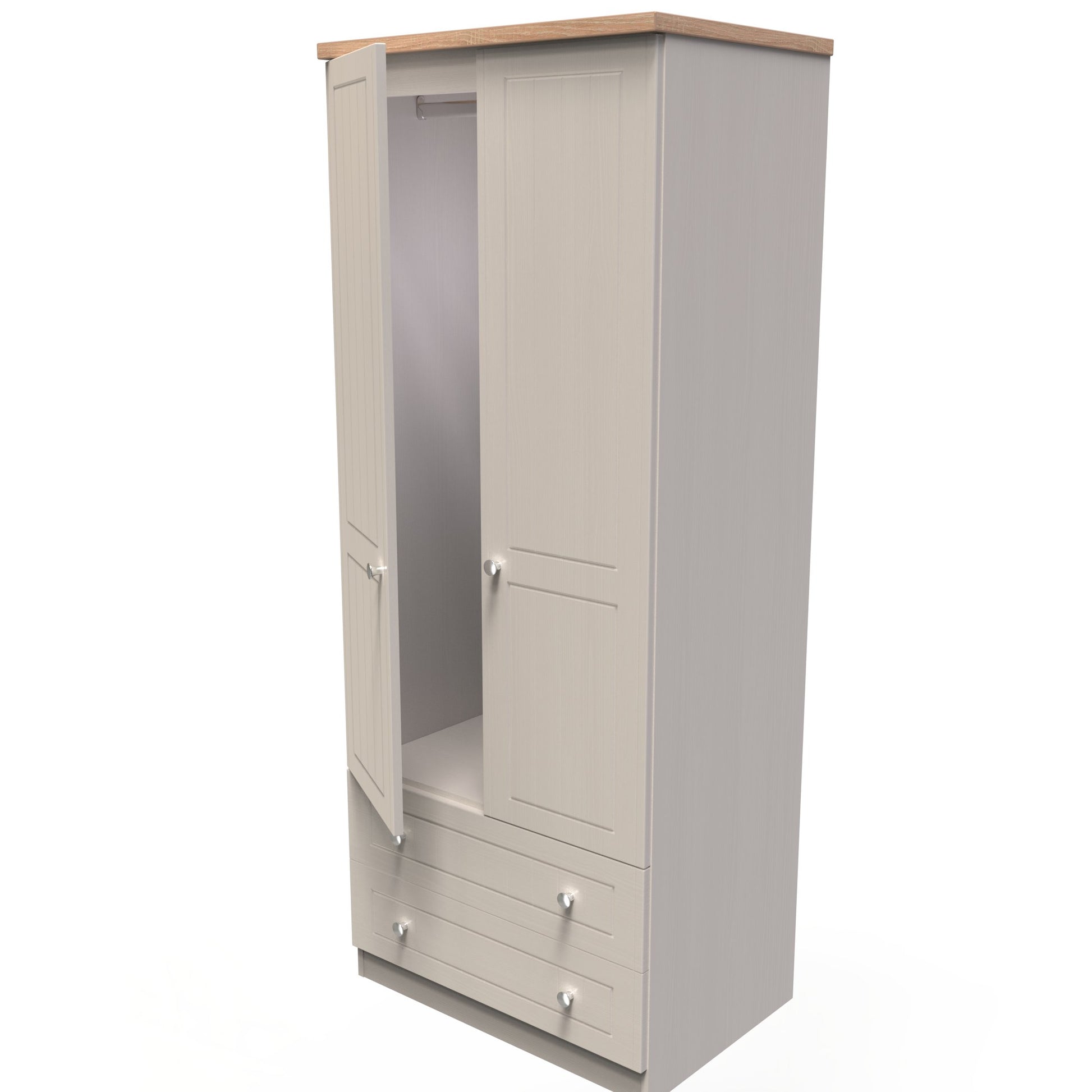 Vienna Tall Wardrobe Off-white & Light Oak 2 Doors 2 Drawers 74cm