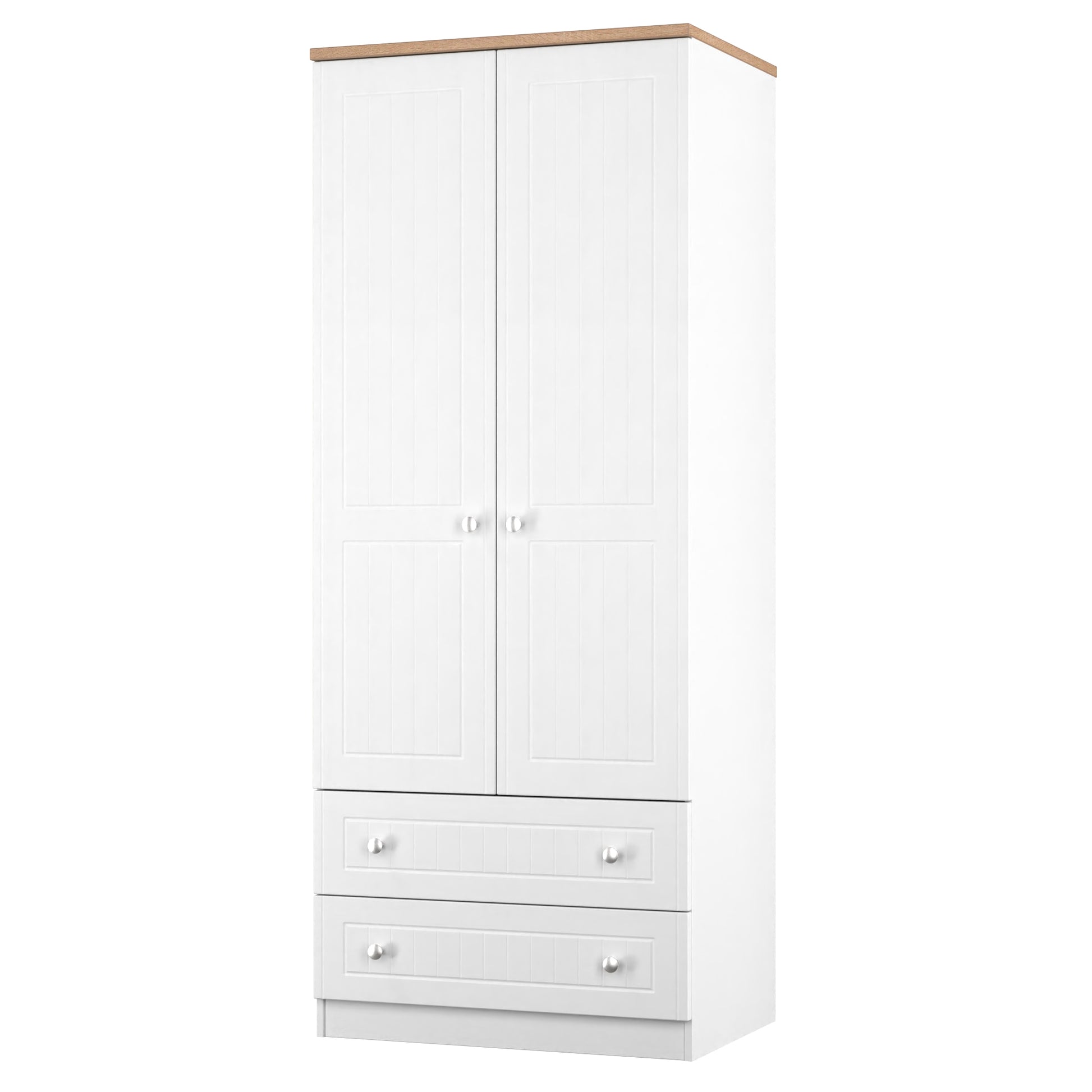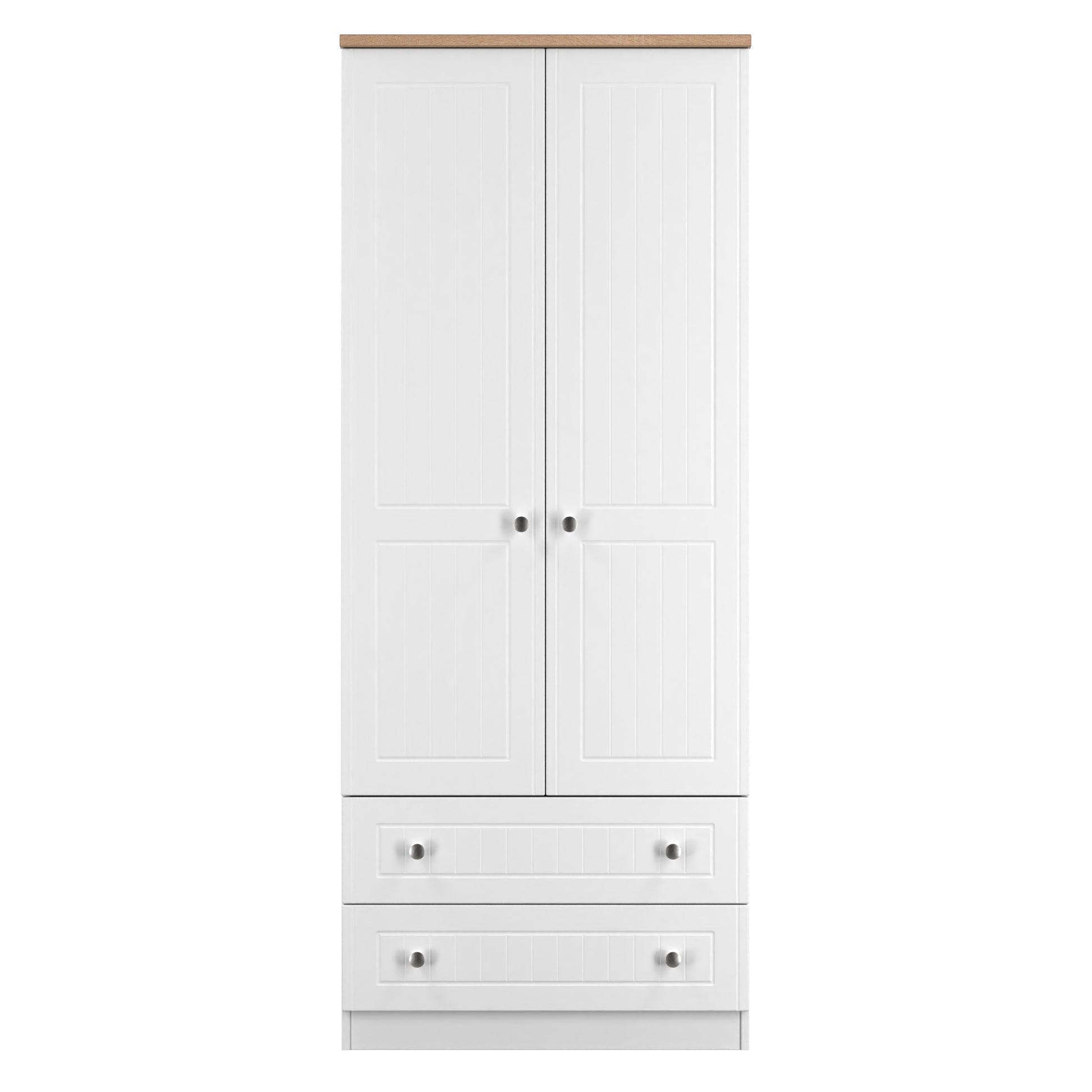 Vienna Tall Wardrobe White & Light Oak 2 Doors 2 Drawers 74cm