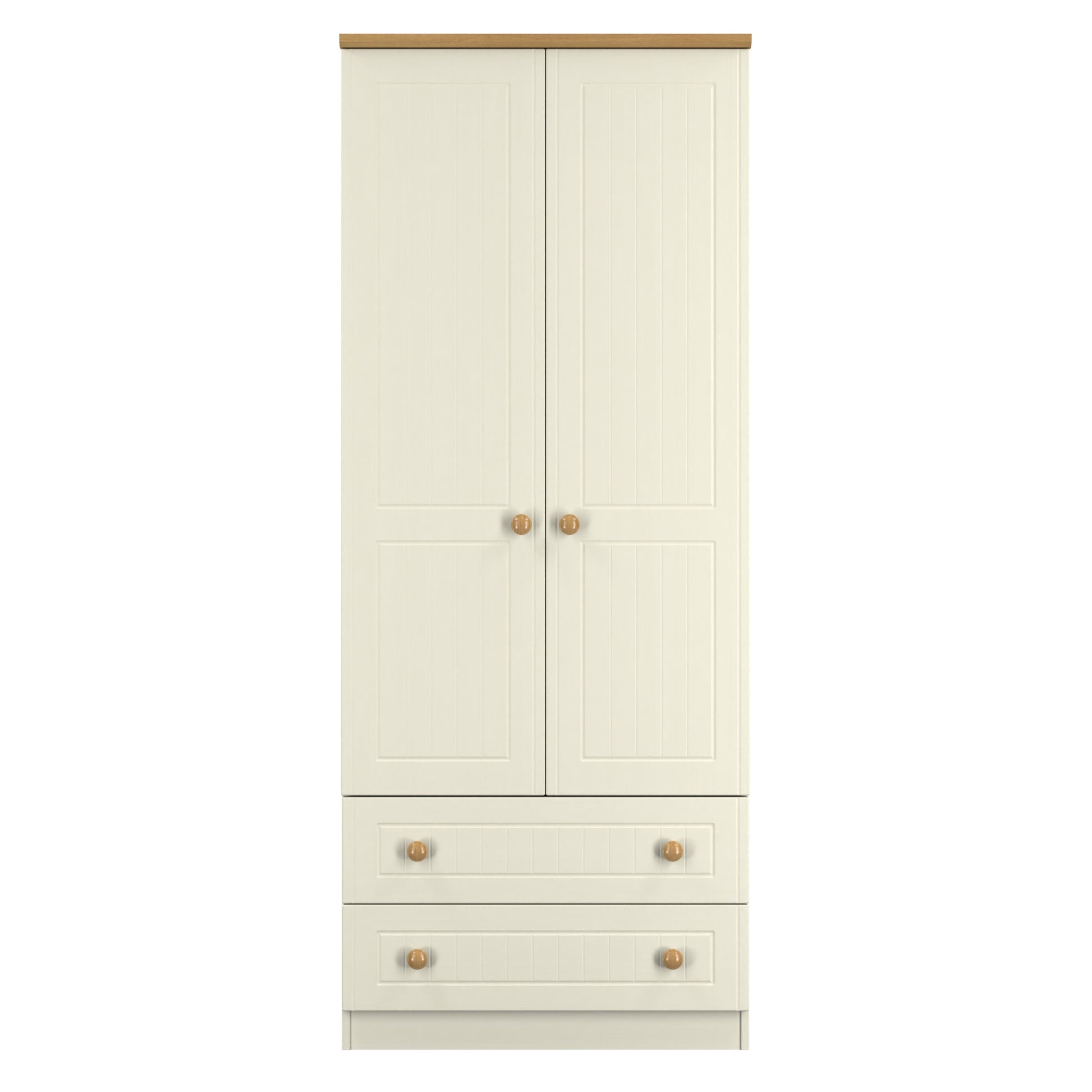 Warwick Tall Wardrobe Cream & Oak 2 Doors 2 Drawers 74cm
