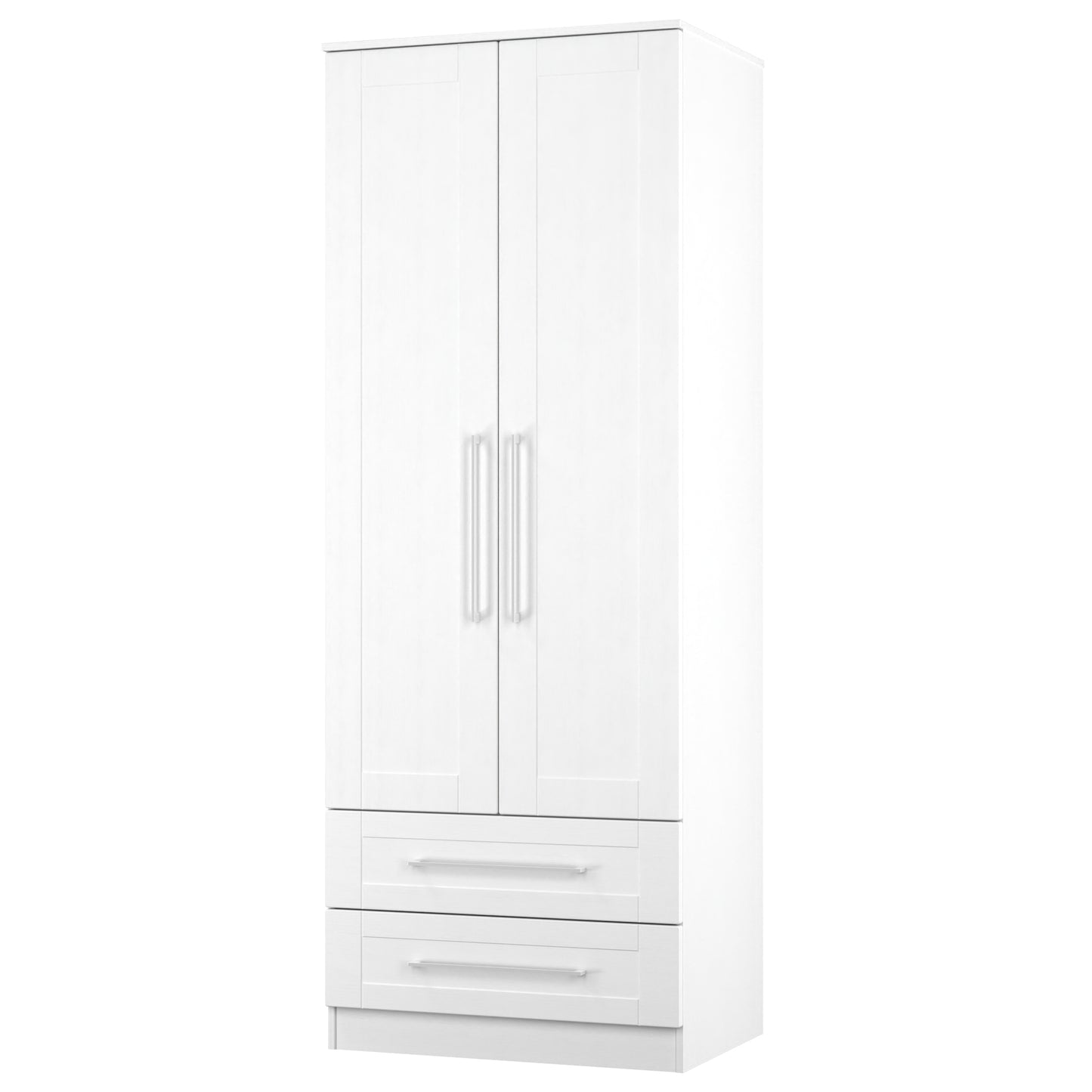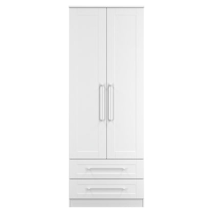 York Tall Wardrobe White 2 Doors 2 Drawers 74cm