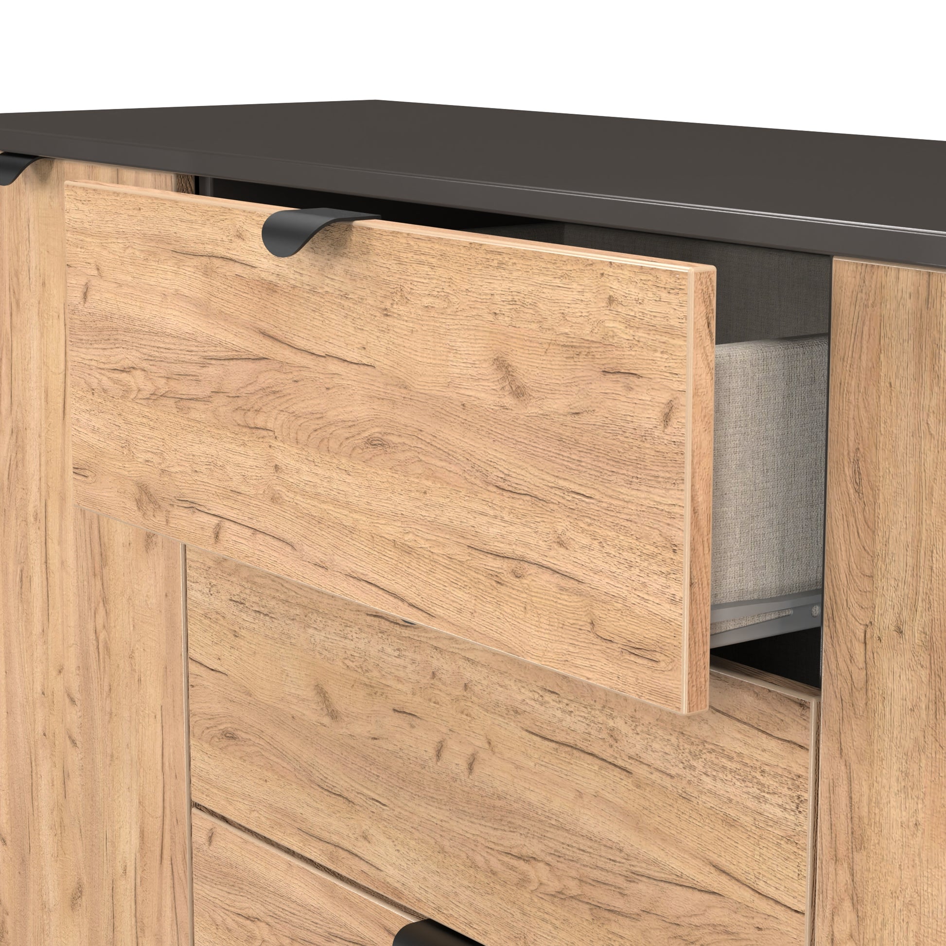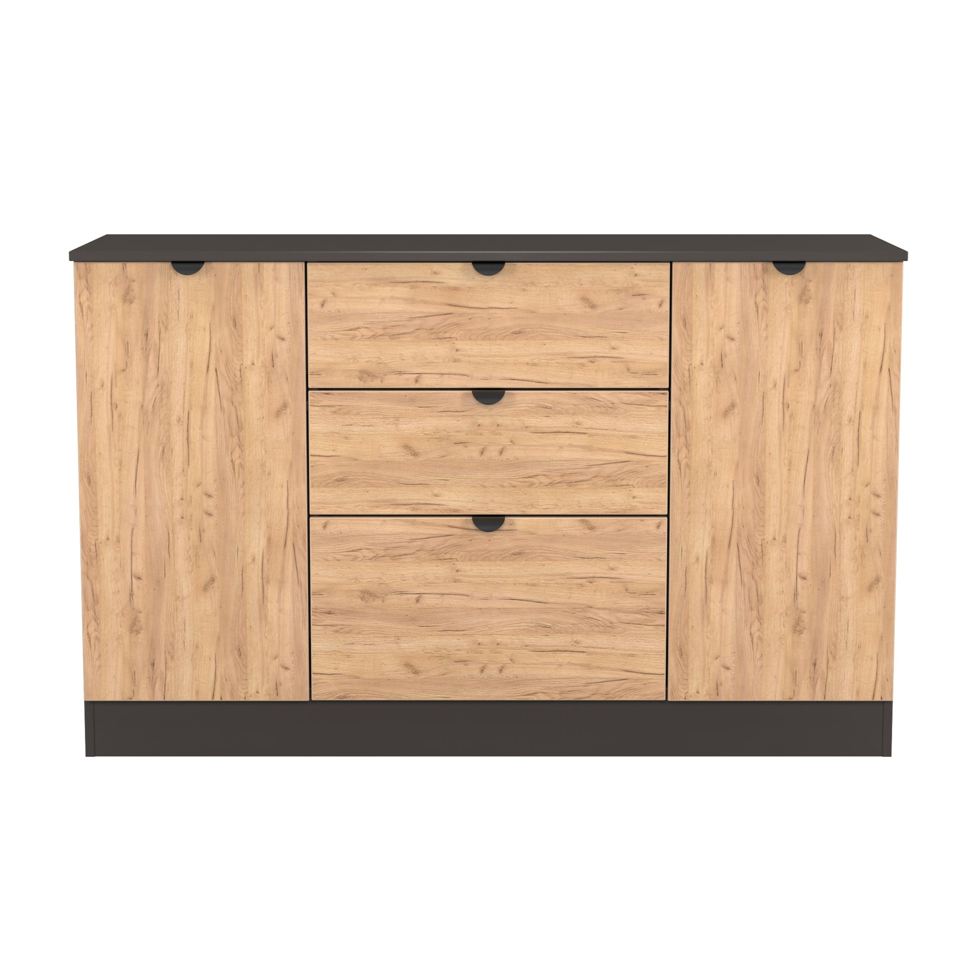 Bora Large Sideboard Oak & Dark Grey 2 Doors 2 Shelves 3 Drawers 126cm